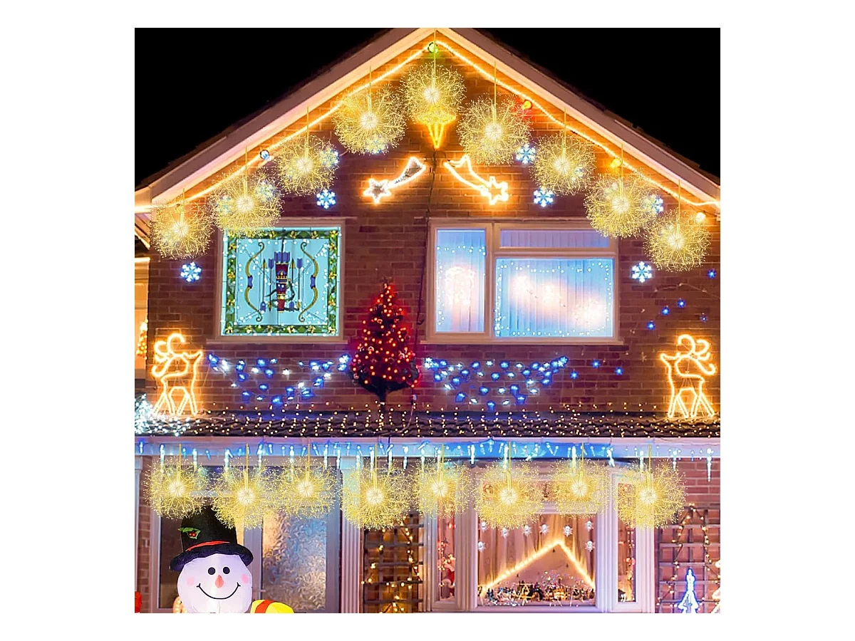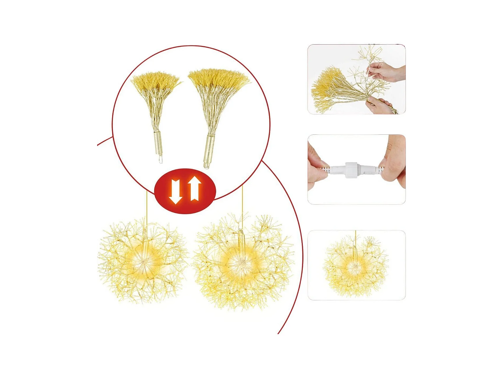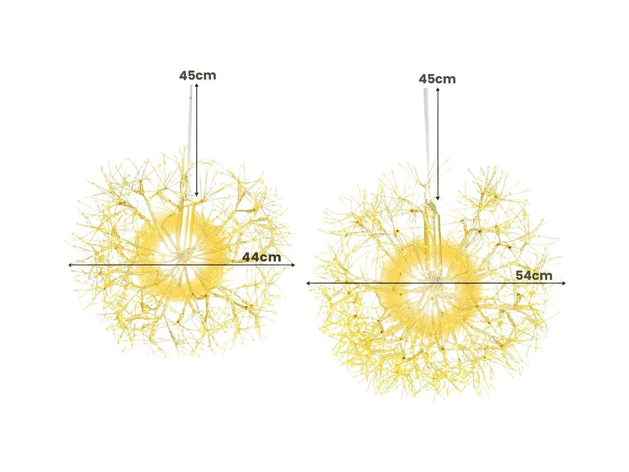 2 Pezzi di luce a dente di leone appesa da 54 e 44cm, Ornamenti illuminati di natale con 1488 LED bianchi caldi