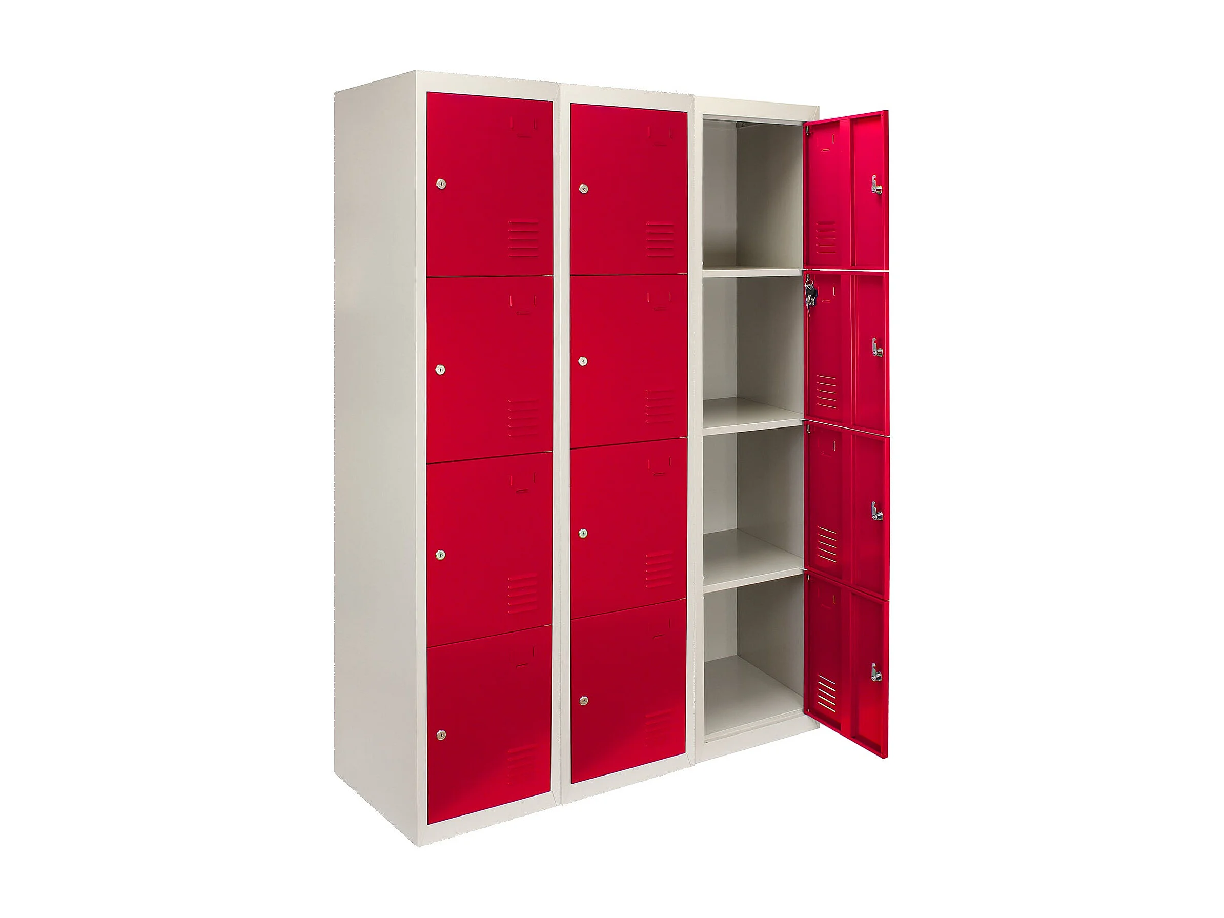 3 Armadietti da Montare con 4 Porte Rosse in Acciaio per Scuole e Palestre