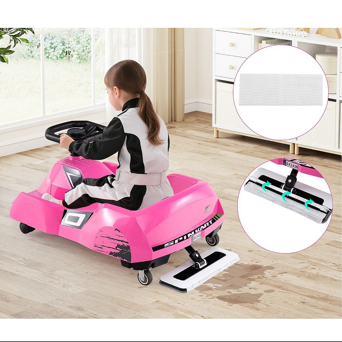 3 in 1 Pulizia Bambini Go-kart elettrico 12V Pulizia Drift Kart con Mop staccabile Rosa