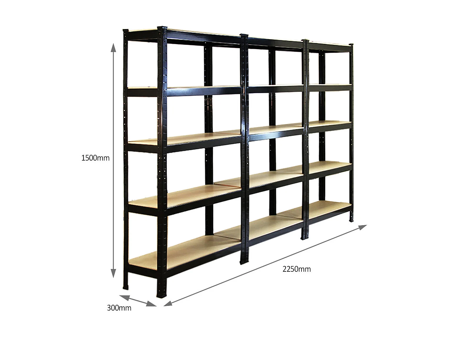 Scaffale da Garage ad Incastro T-Rax - Nero - 75cm x 30cm - 5 Pezzi