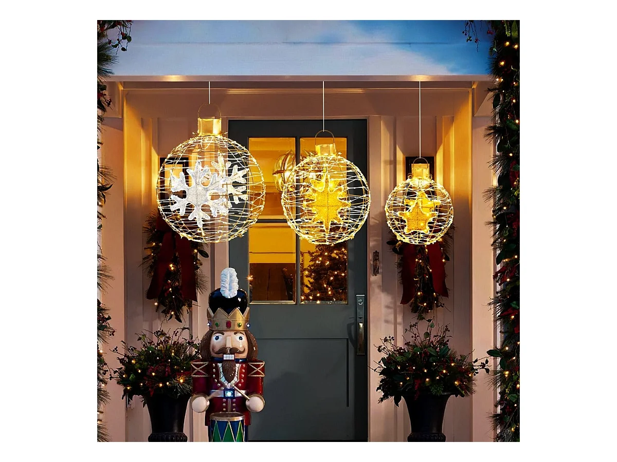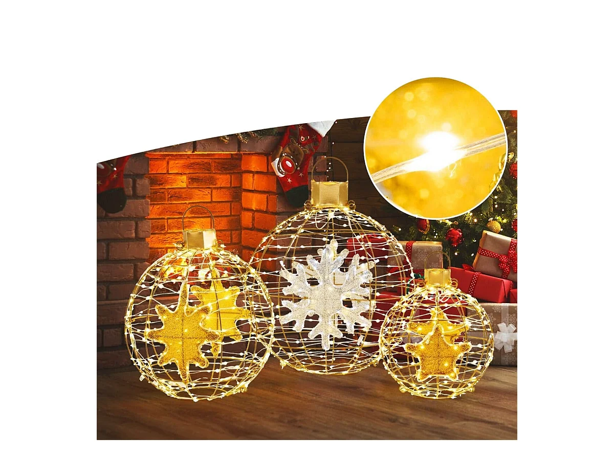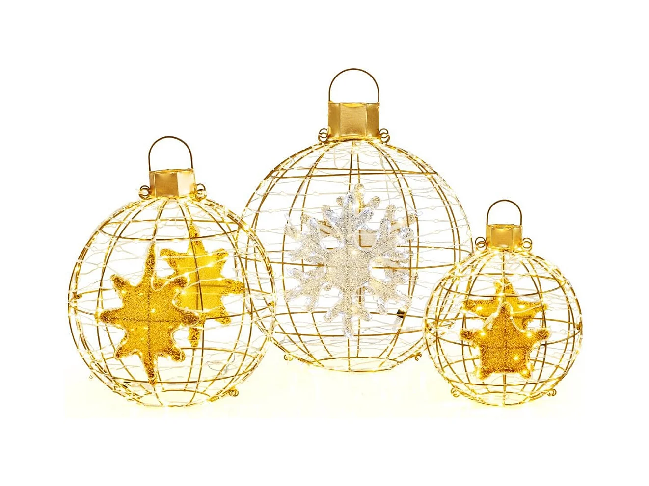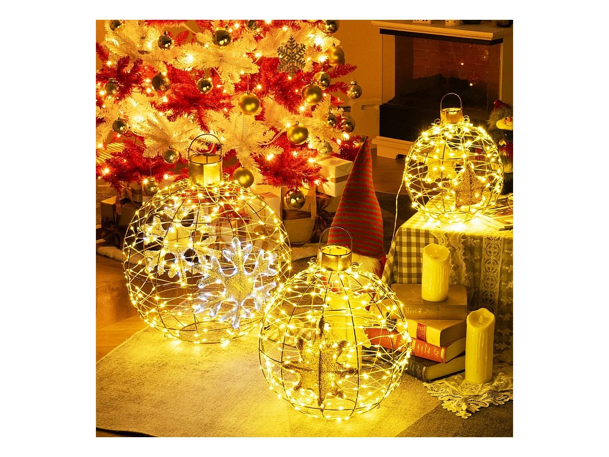 3 Sfere lanterne pre-illuminate con 732 luci led brillanti, Ornamenti natalizi da appendere per interni ed esterni
