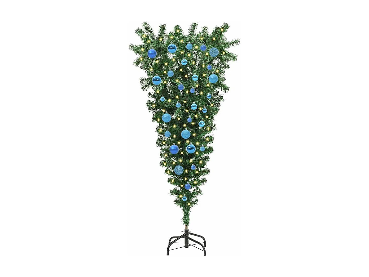 Albero di Natale artificiale capovolto preilluminato con set di palline