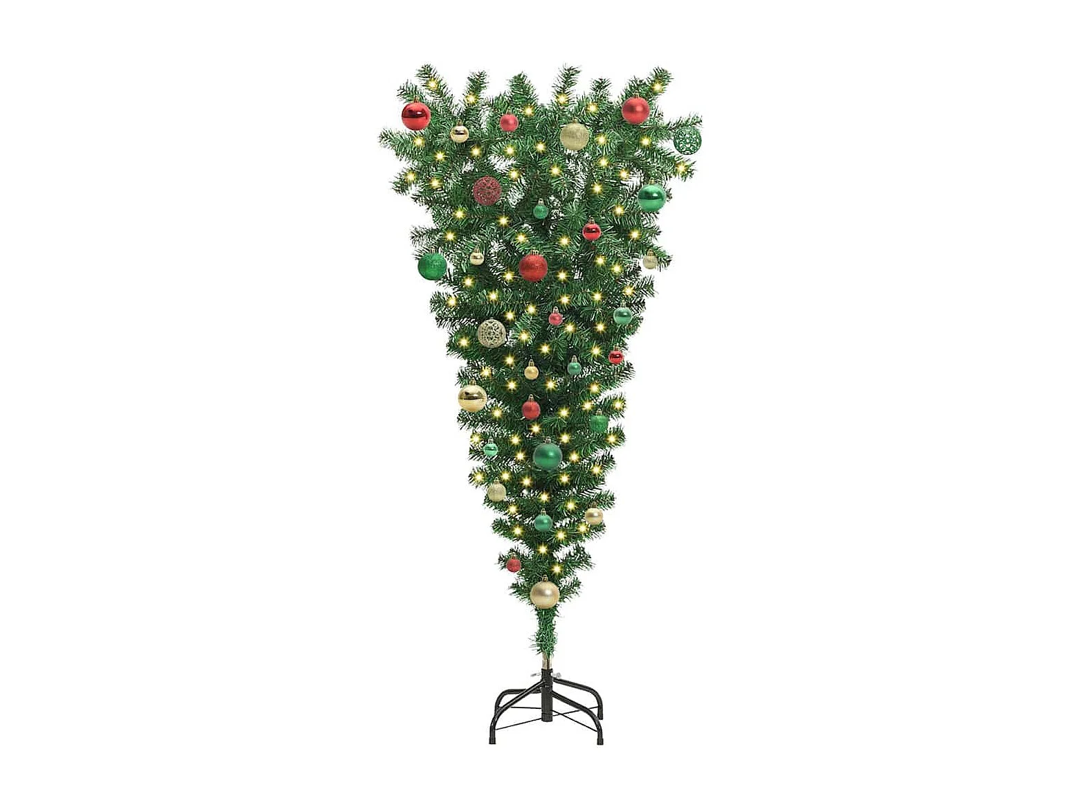 Albero di Natale artificiale capovolto preilluminato con set di palline