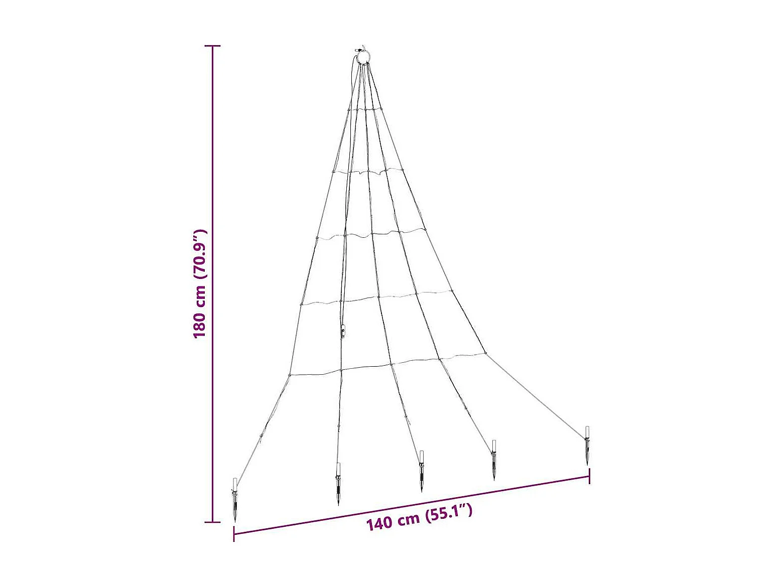 Albero di Natale a LED con picchetti da terra Bianco caldo 180 cm Metallo