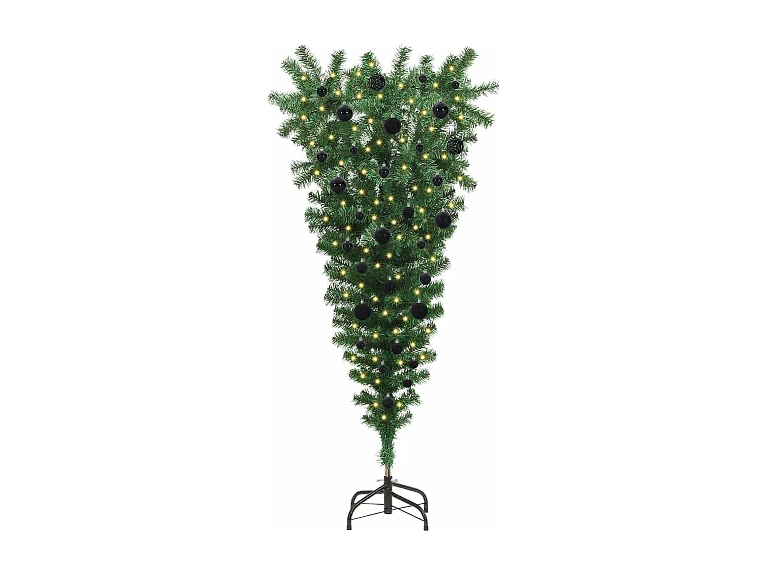 Albero di Natale artificiale capovolto preilluminato con set di palline