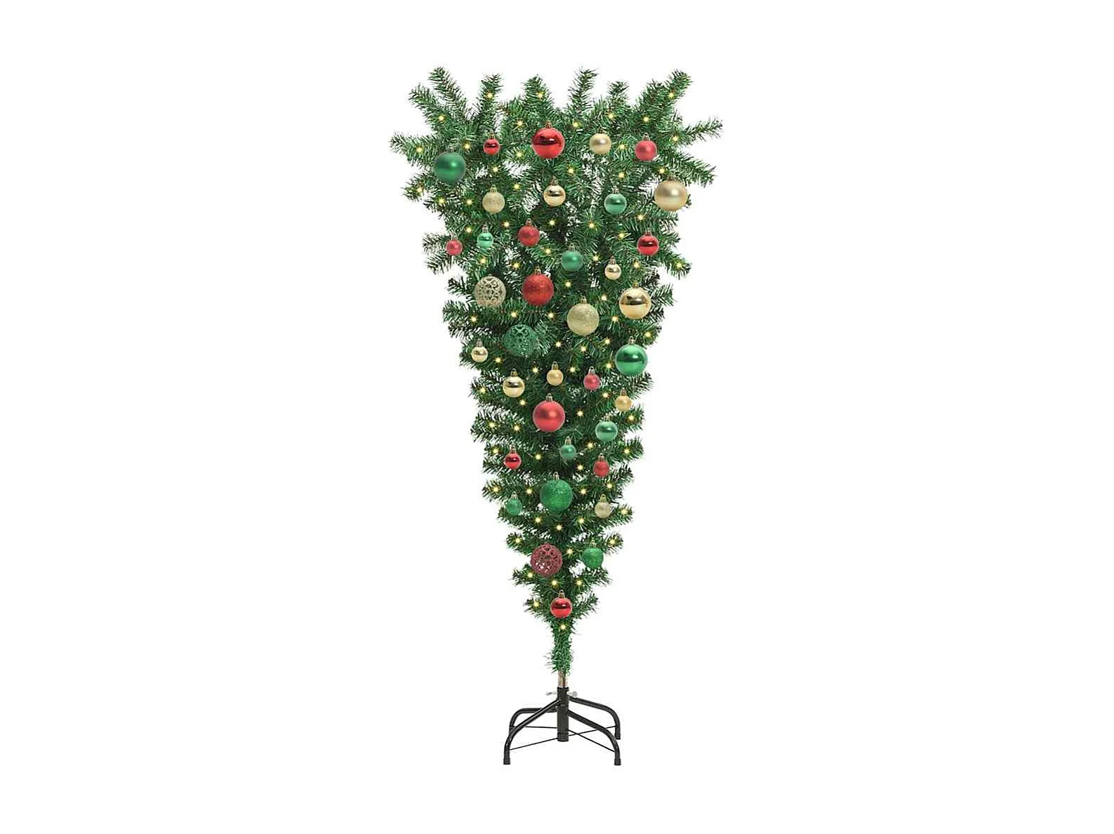 Albero di Natale artificiale capovolto preilluminato con set di palline