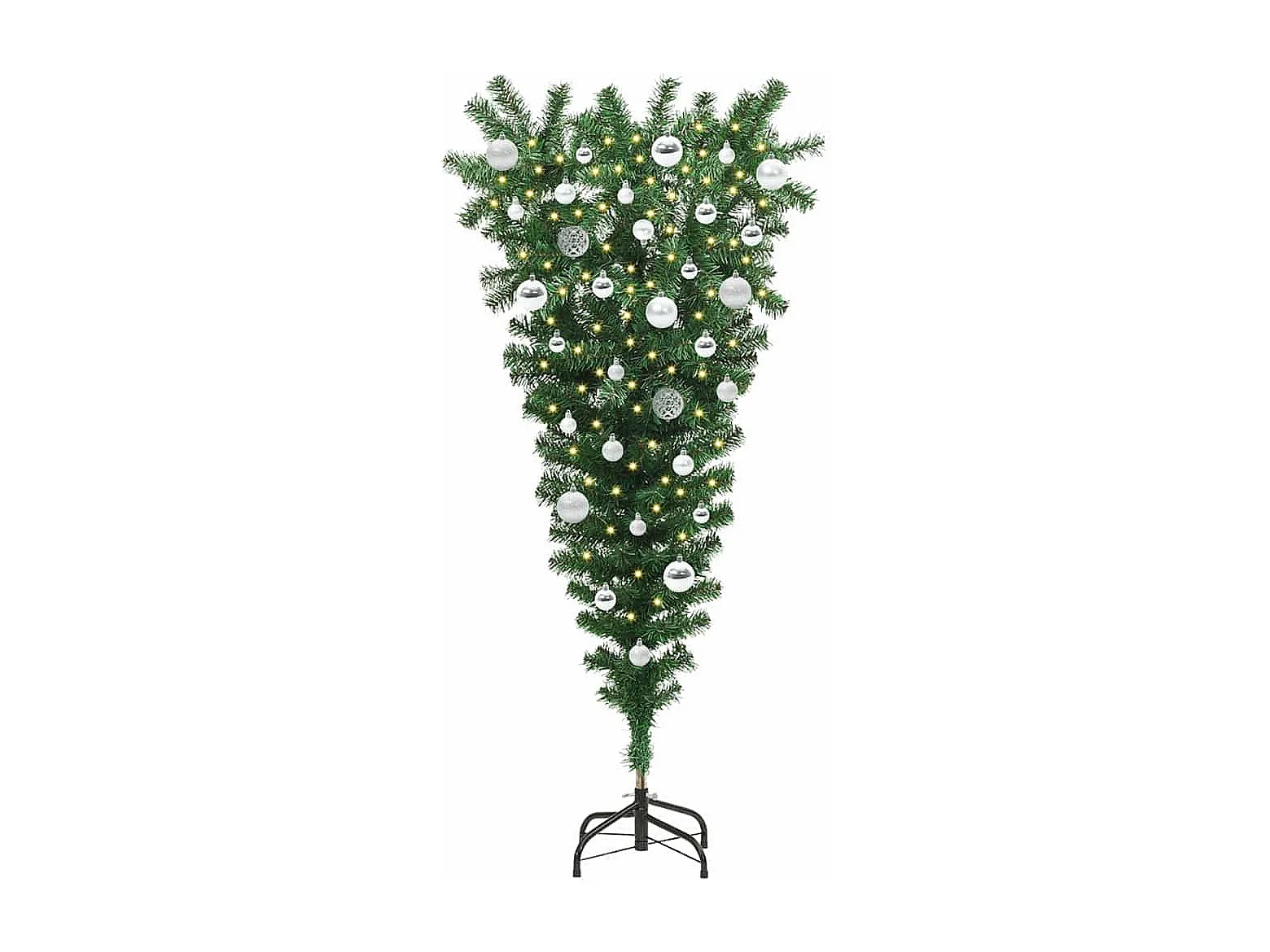 Albero di Natale artificiale capovolto preilluminato con set di palline