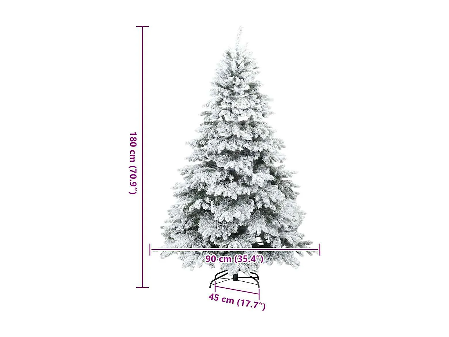 Albero di Natale artificiale con cerniere e fiocchi di neve 180 cm