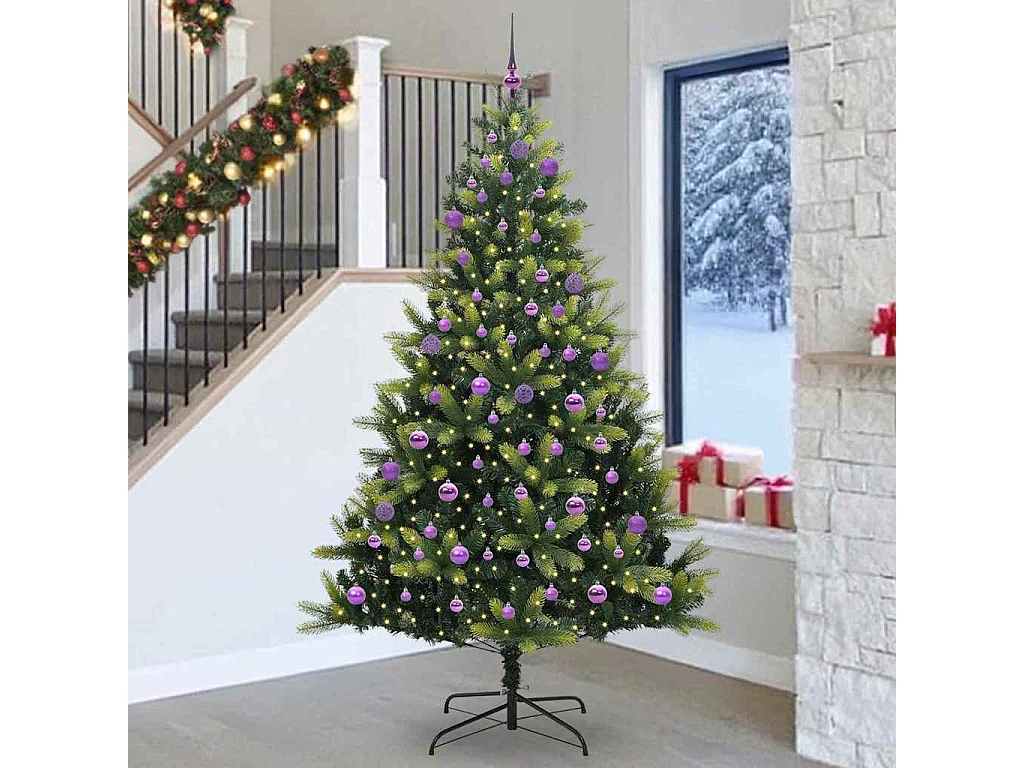 Albero di Natale artificiale preilluminato verde 180 cm PVC e metallo