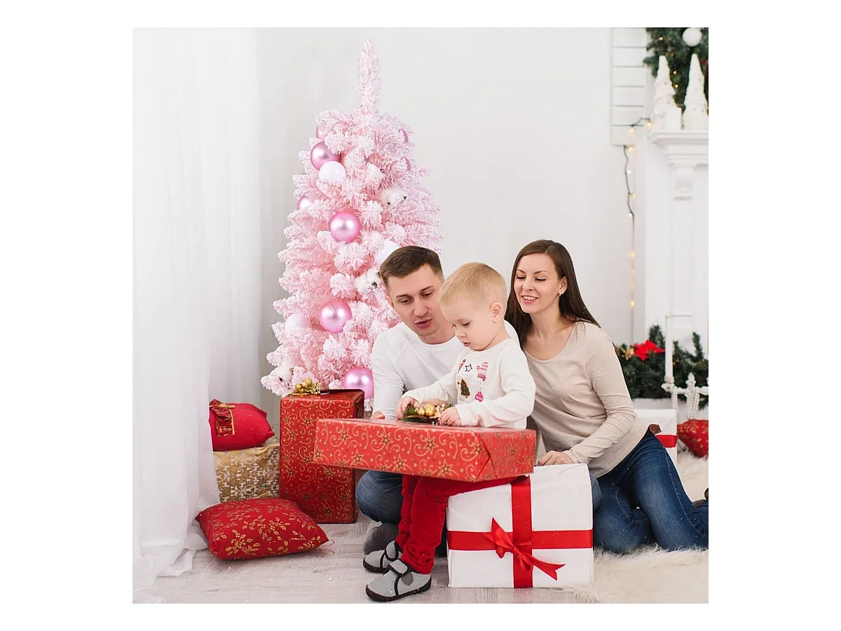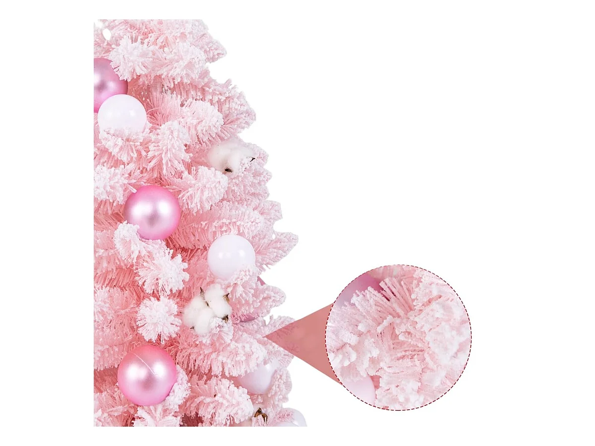 Albero di Natale artificiale preilluminato e palline rosa 180 cm PVC