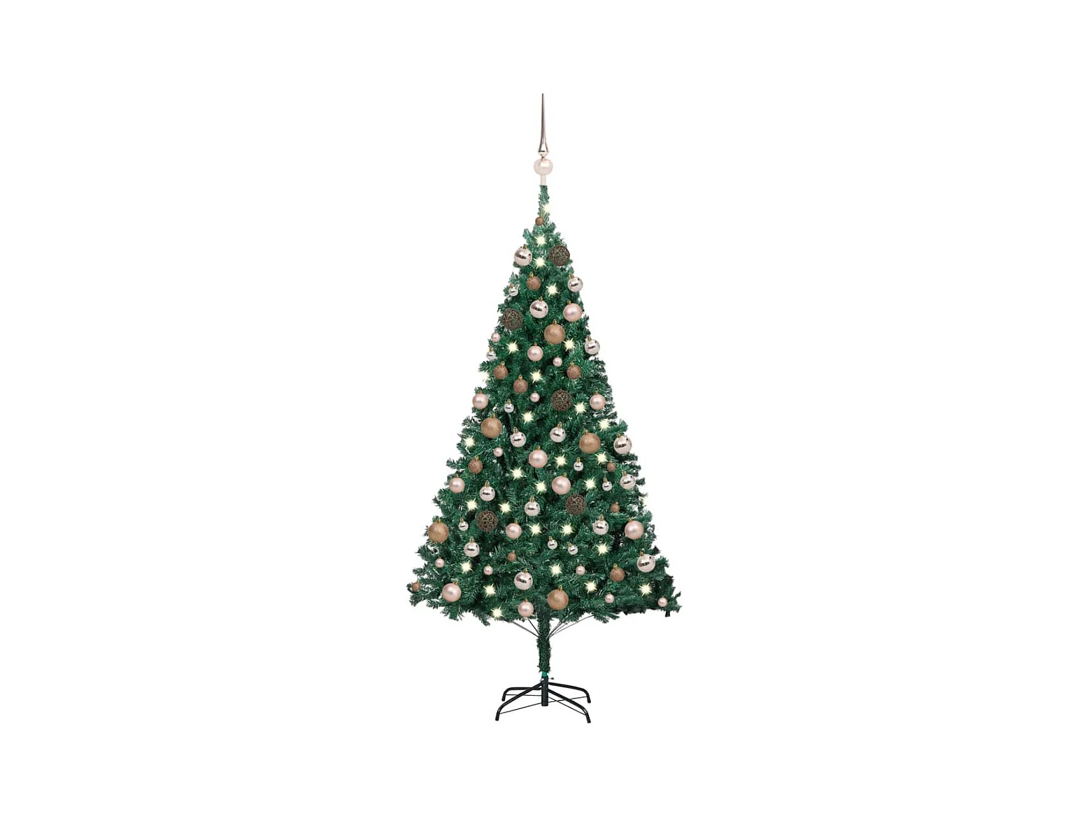Albero di Natale artificiale preilluminato e palline verdi 150 cm PVC