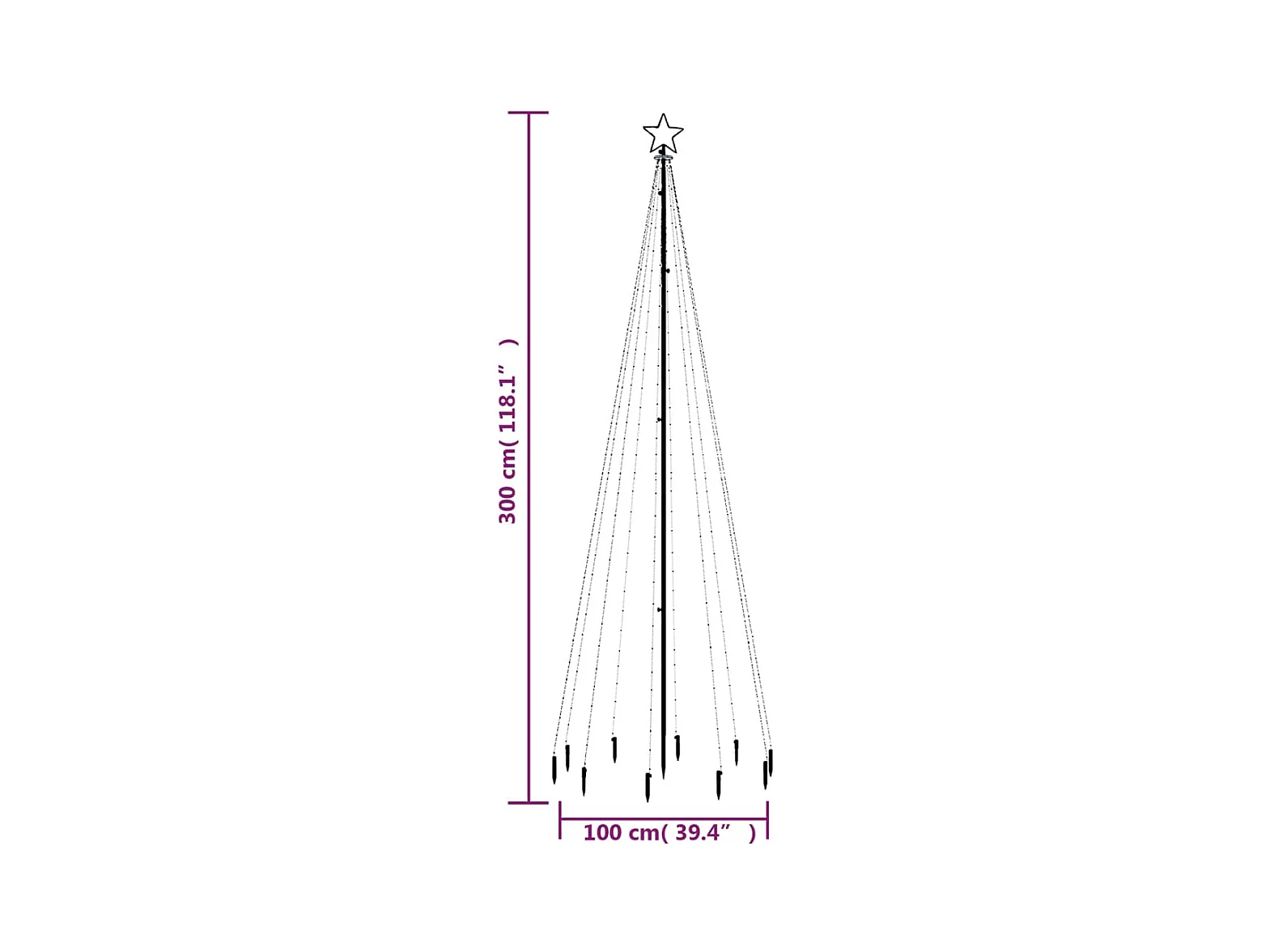 Albero di Natale a LED con picchetti da terra Multicolore 300 cm Metallo