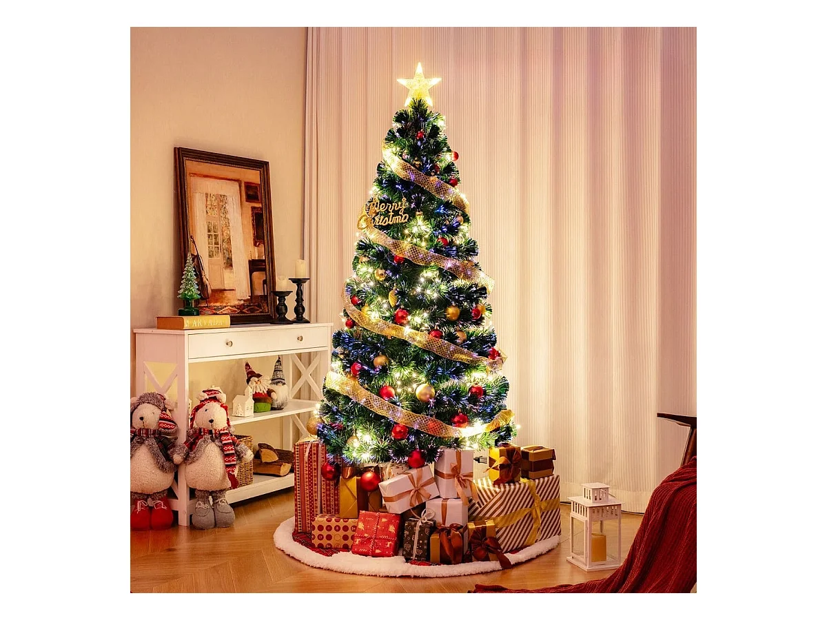 Albero di Natale in fibra ottica da 180cm pre-illuminato con luci a stringa stella sulla cima, Albero Natale artificiale