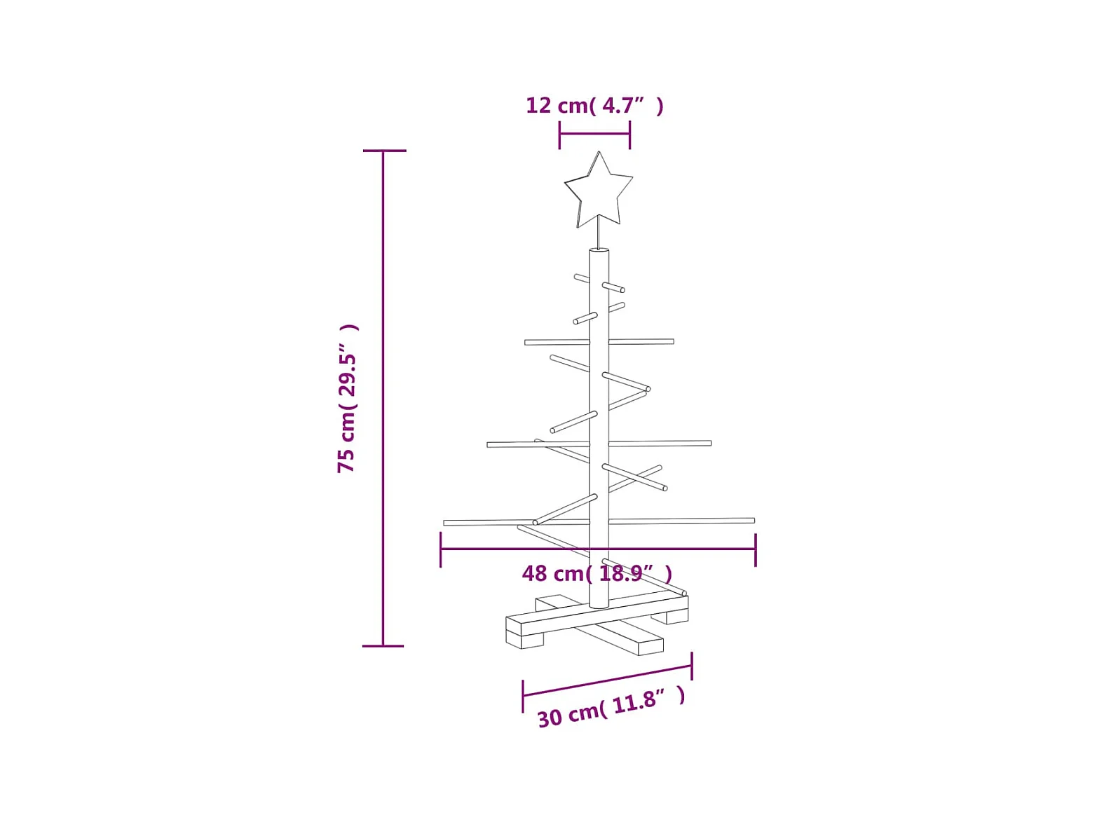 Albero di Natale in legno per decorazione 75 cm in legno di pino massiccio