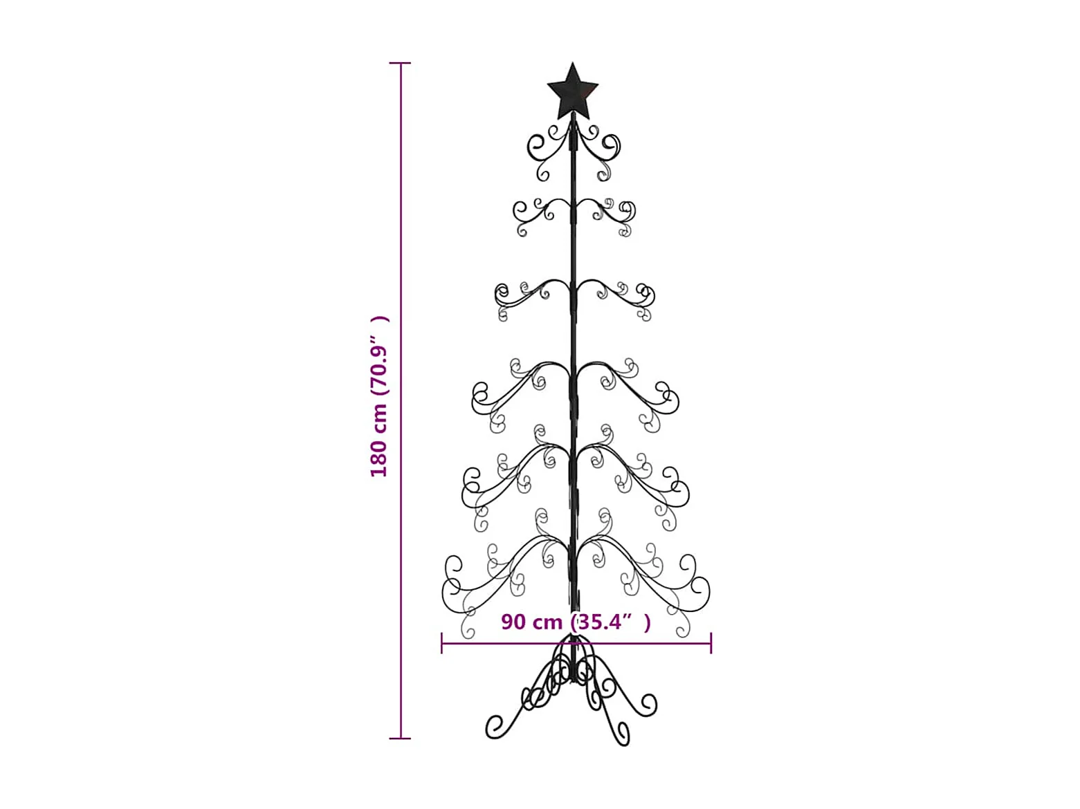 Albero di Natale in metallo nero 90 cm in acciaio verniciato a polvere
