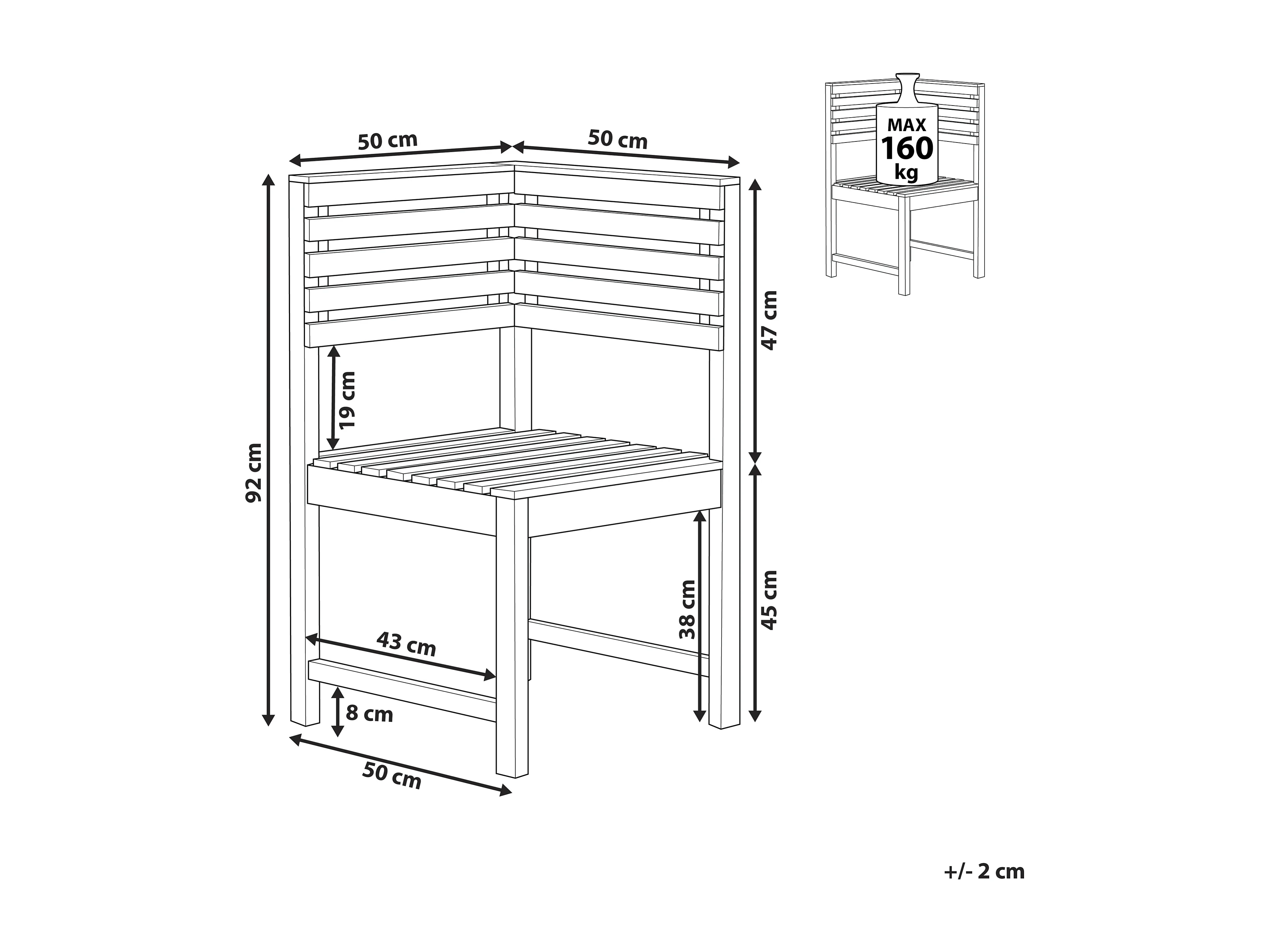 Sedia da giardino 57,5x63x76 cm in legno di pino massiccio
