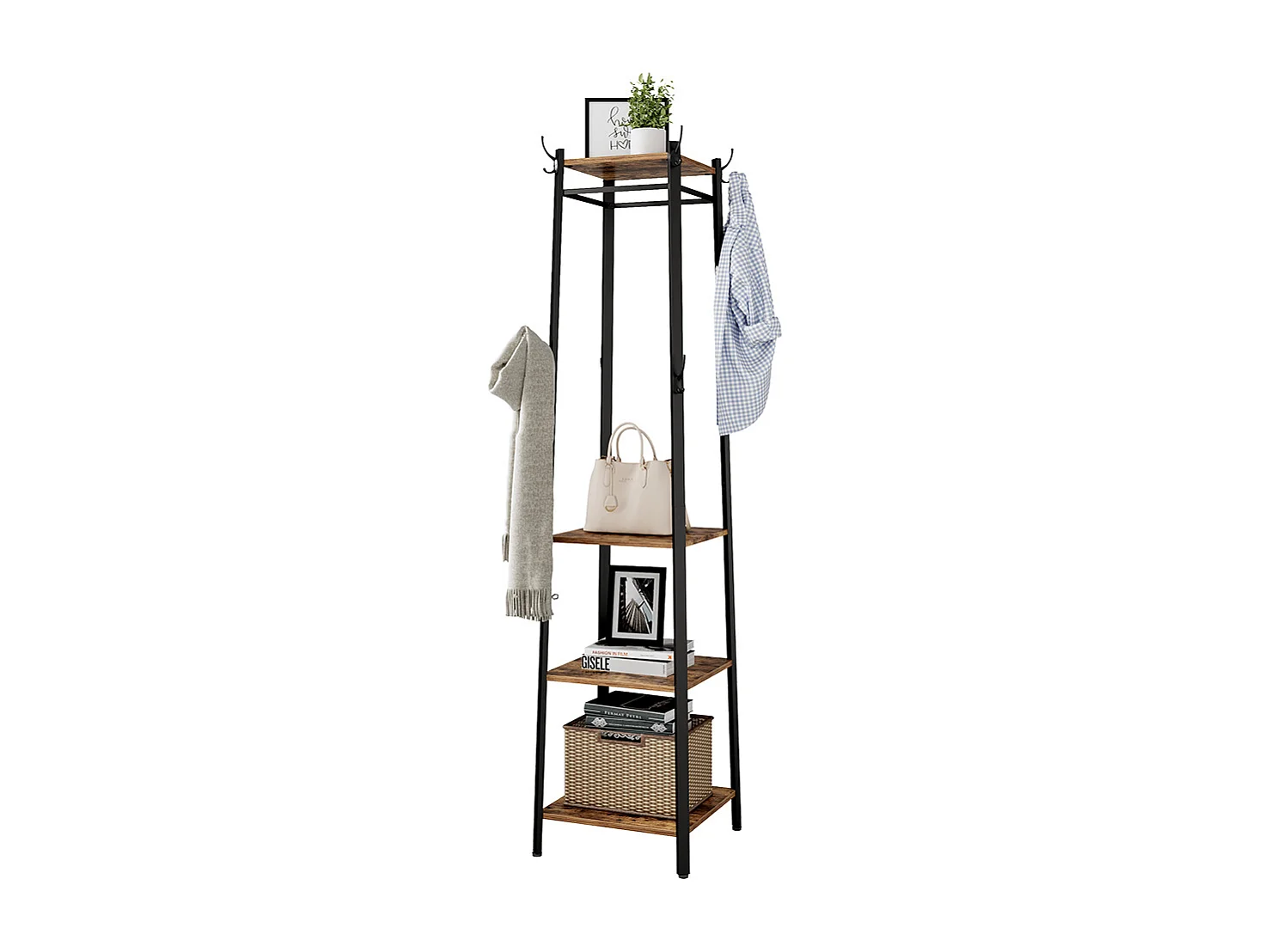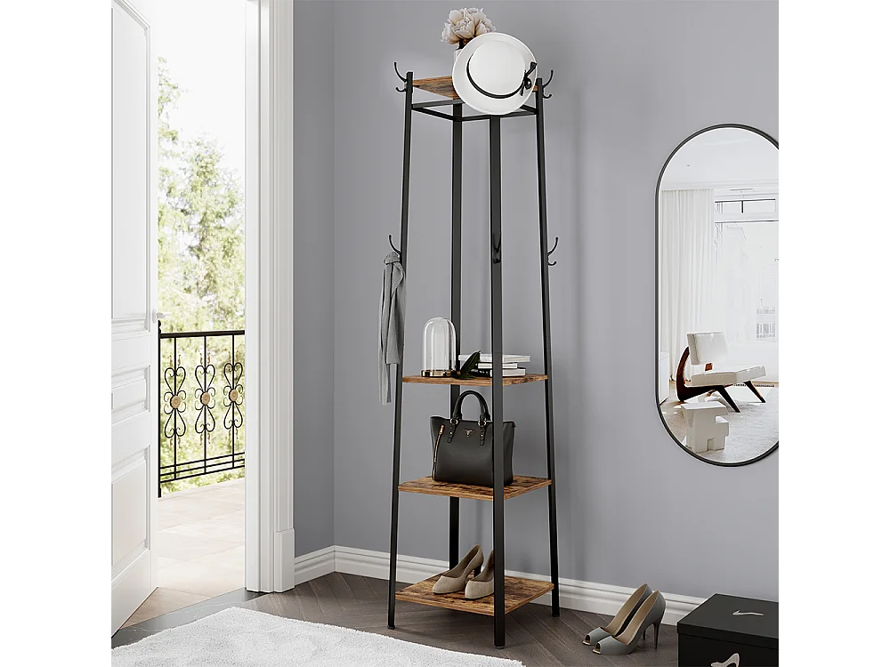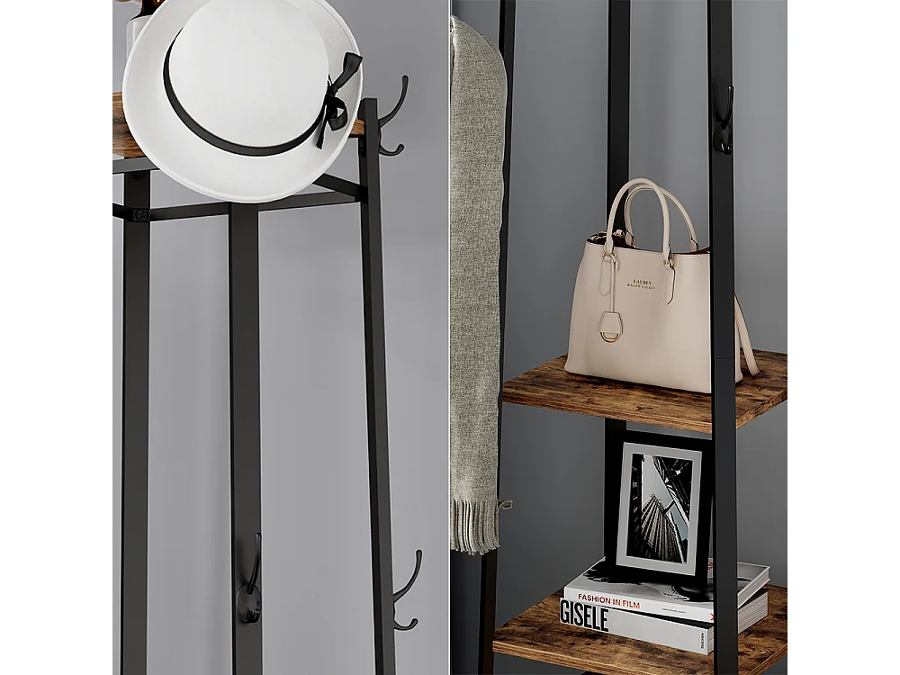 Appendiabiti di design con 3 ripiani e 8 ganci, appendiabiti solido, appendiabiti per ingresso, 39x39x169cm