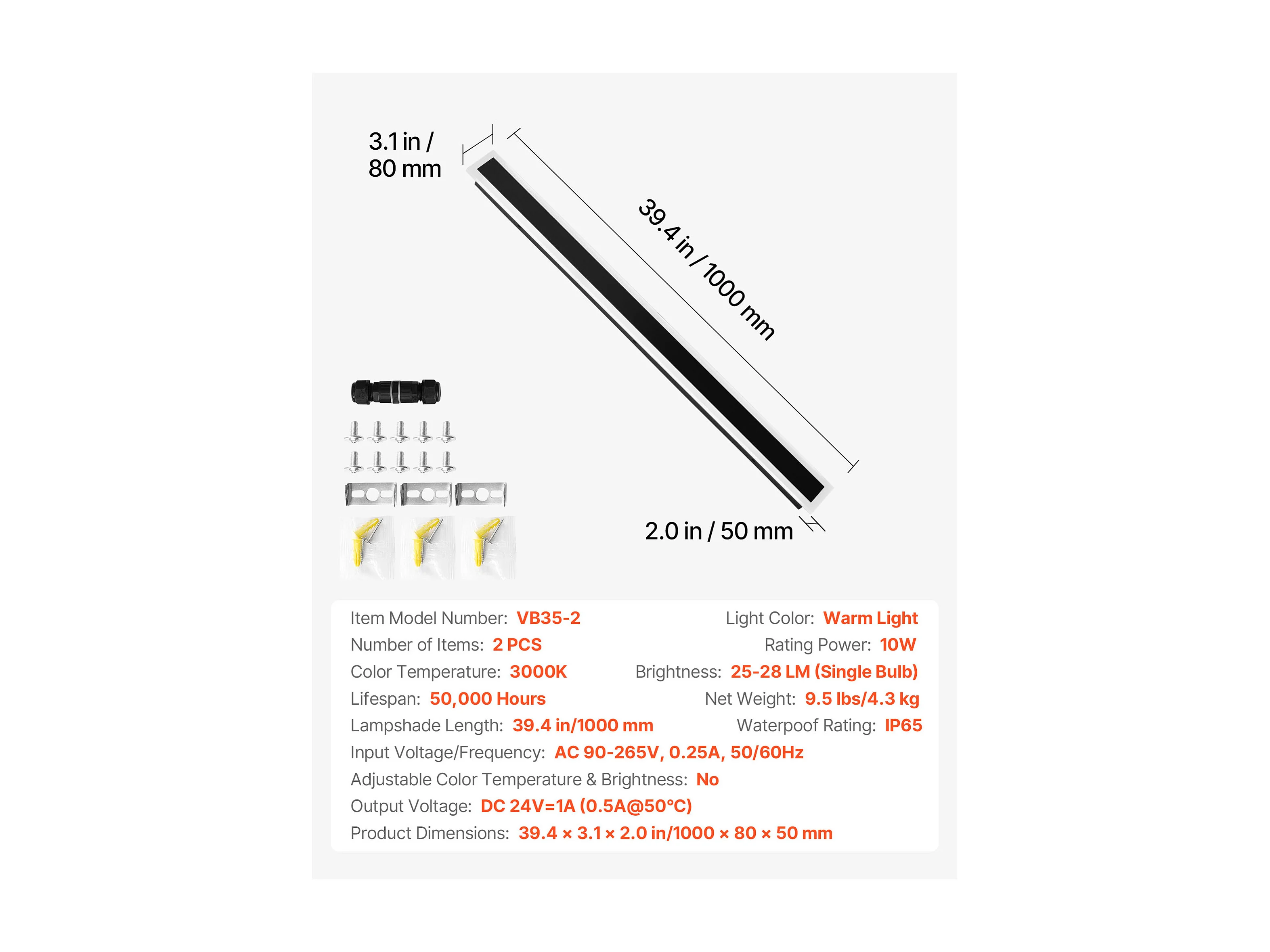 Applique a Parete SucceBuy da Esterno, 10 W, Illuminazione Esterna a Parete, Lotto di 2, Applique a Parete Moderne LED, 1 m, Bianco Caldo 3000 K, Impermeabile IP65