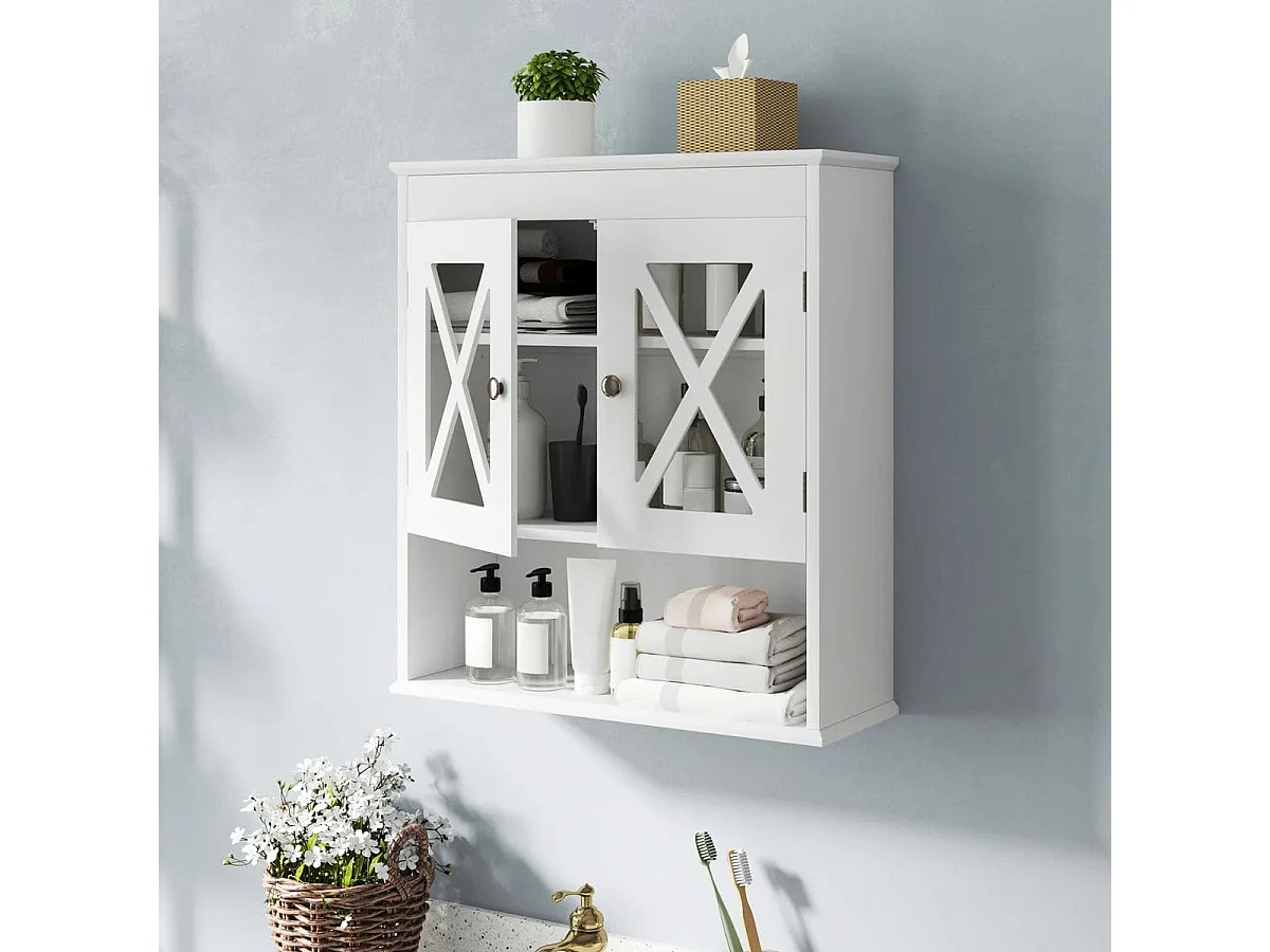 Armadietto da parete per il bagno Armadietto per la medicina con 2 ante in acrilico Ripiano regolabile Scomparto aperto Bianco