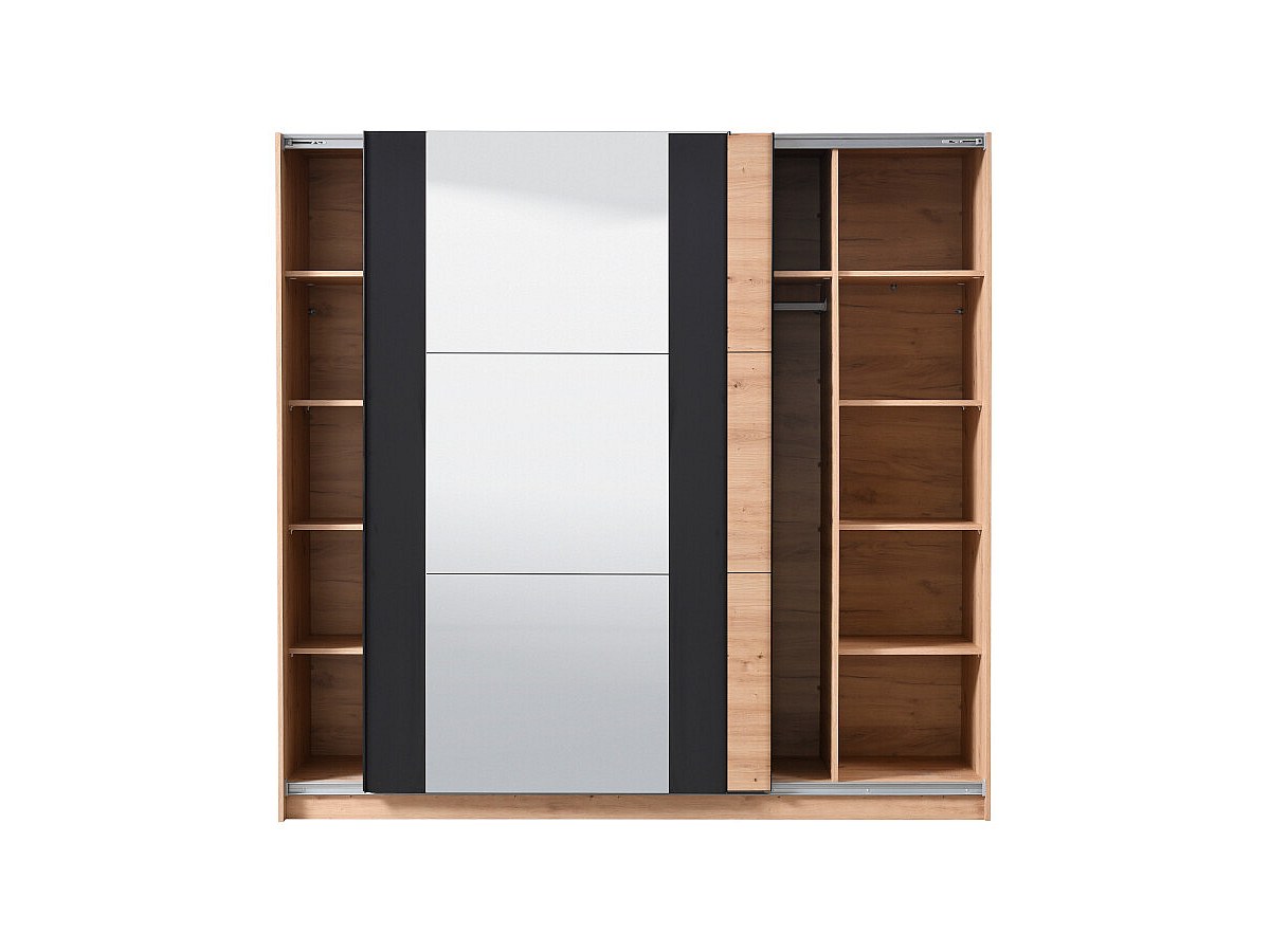 Armadio 2 ante scorrevoli con specchio L.217cm Rovere e Nero - PHILADELPHIE