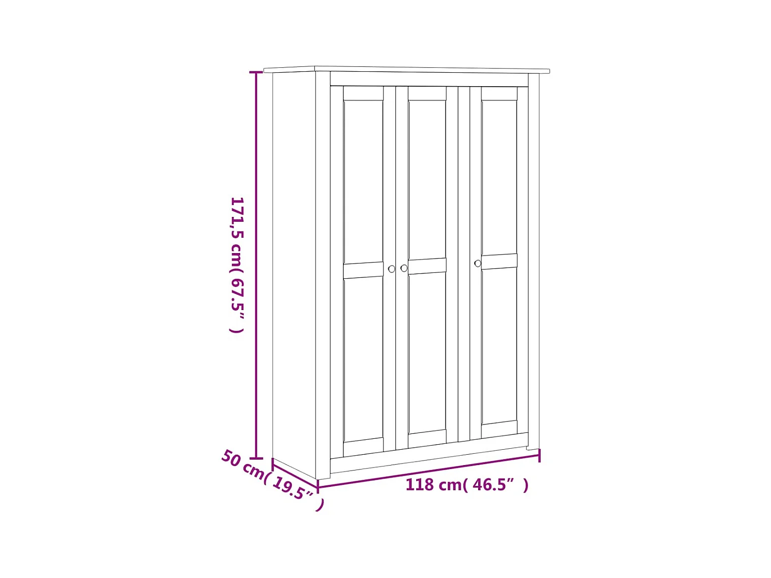 Armadio a 3 ante Grigio 118x50x171,5 cm Pino Panama Assortimento