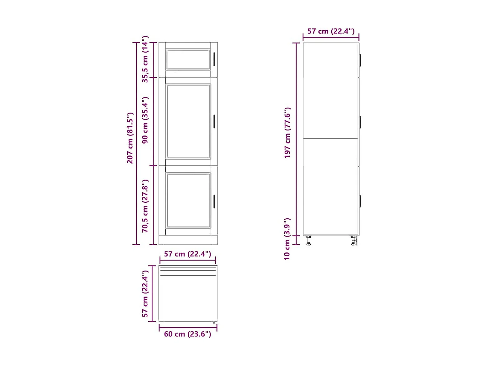 Armadio per Frigo “Lyon” Legno Antico 60x57x207 cm