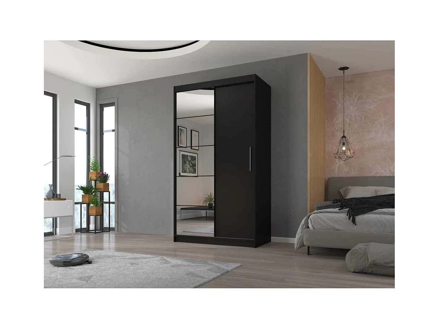 Armadio Dalton (120cm)/Ante scorrevoli/Specchio/Nero