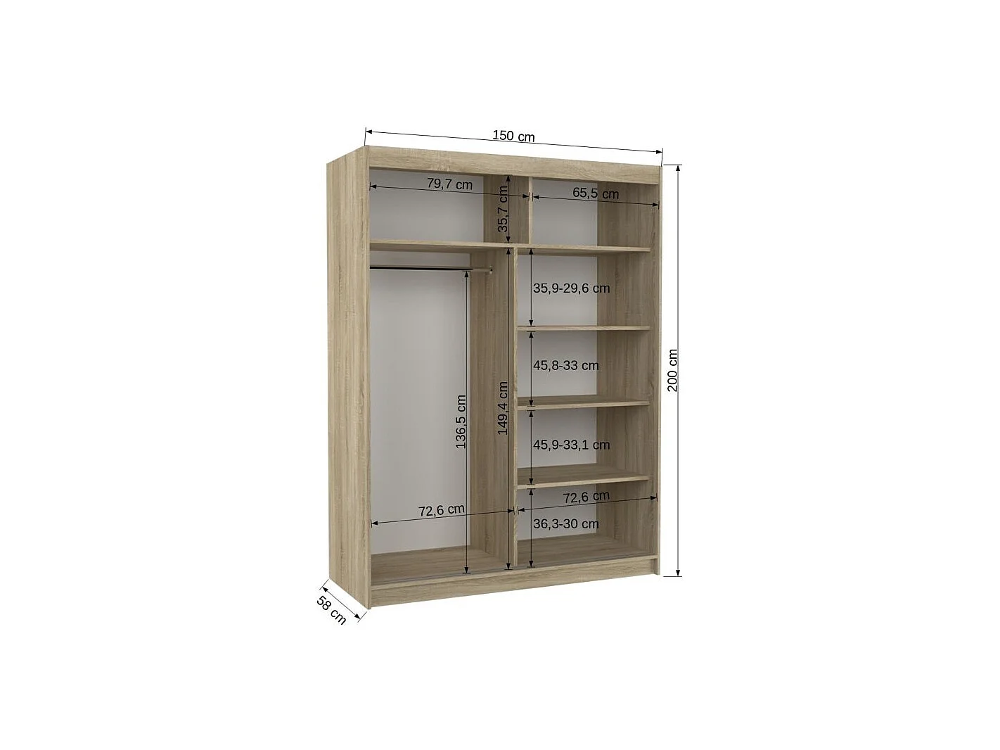 Armadio Ferran Lux (150cm)/ante scorrevoli/specchio/LED/Bianco&Sonoma