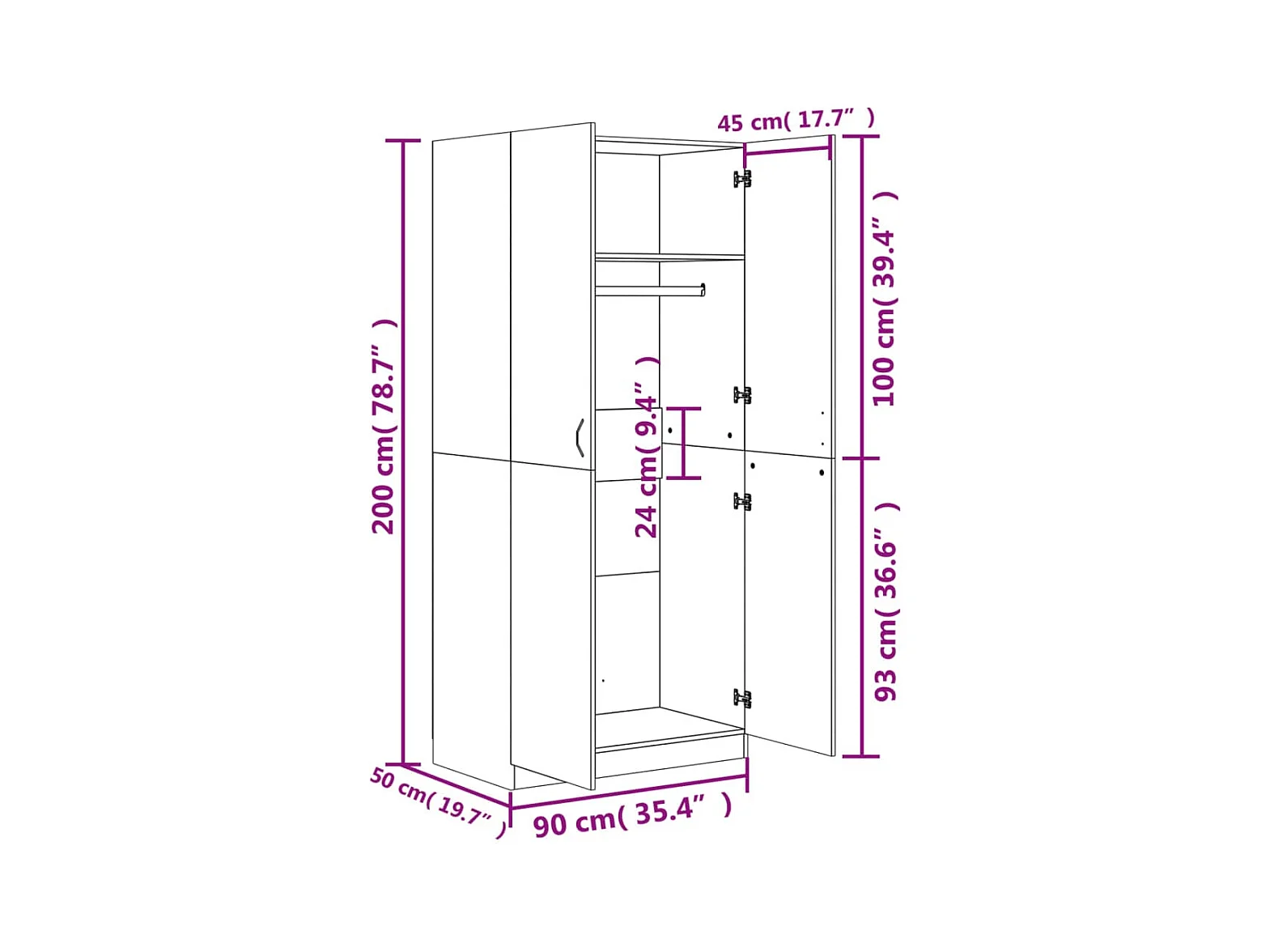 Armadio Sonoma Grey 90x52x200 cm in legno ingegnerizzato
