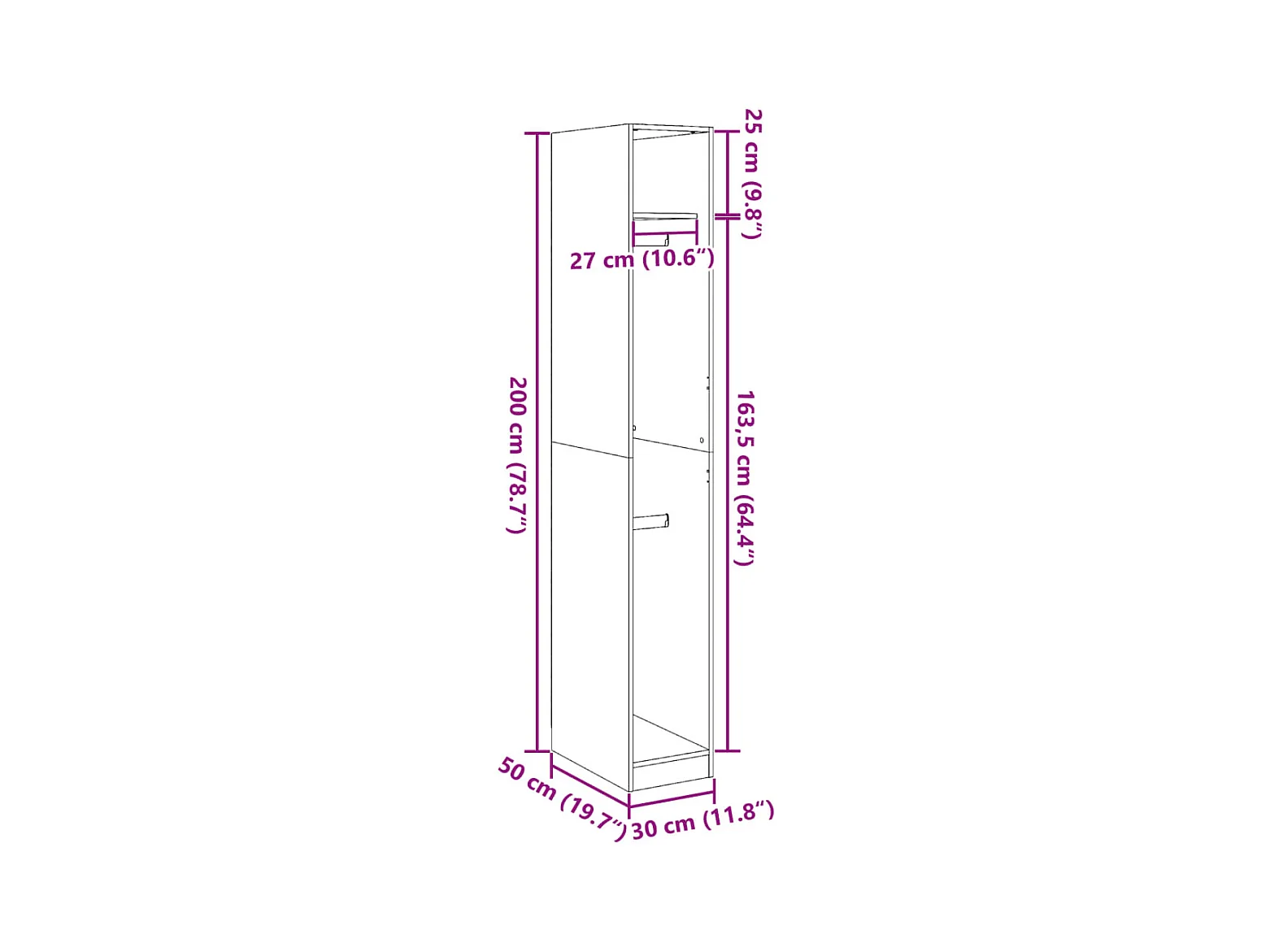 Armadio grigio cemento 30x50x200 cm in legno ingegnerizzato