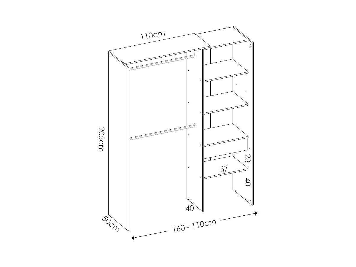 Questo armadio guardaroba è allungabile da 110 a 160cm grazie al bastone appendiabiti tagliabile.