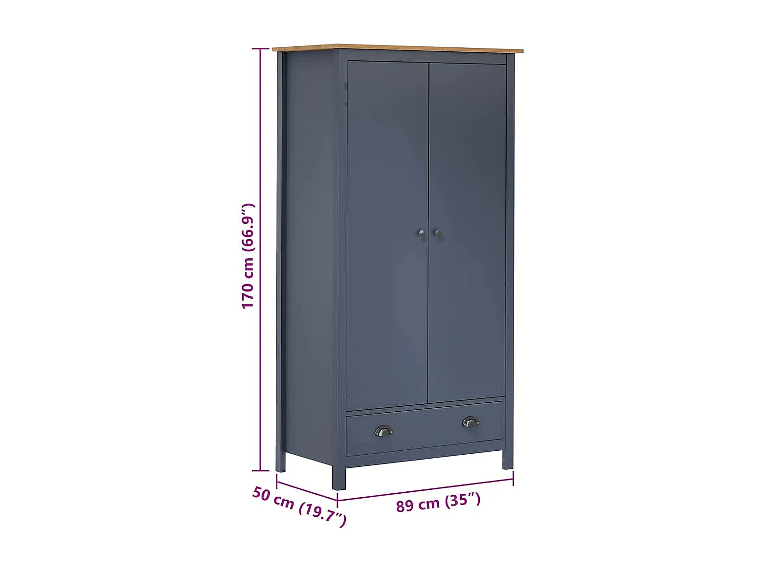 Armadio Hill a 2 ante grigio 89x50x170cm in legno massello di pino