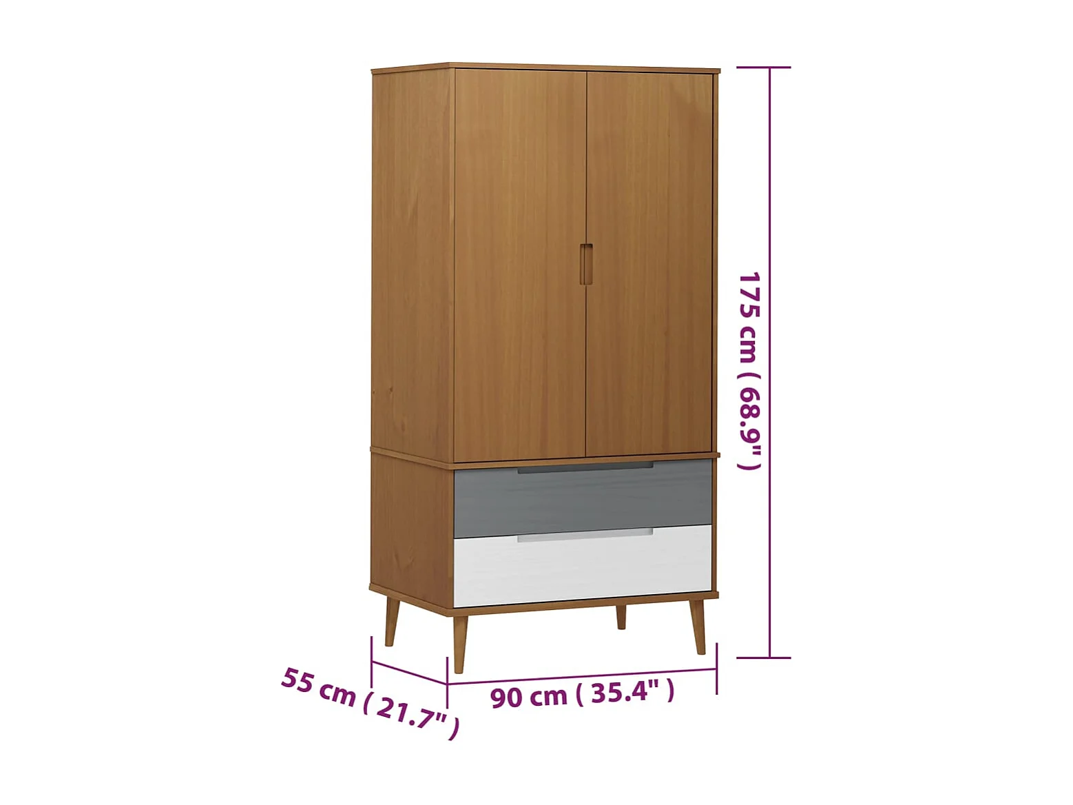 Armadio MOLDE Marrone 90x55x175 cm Legno massello di pino