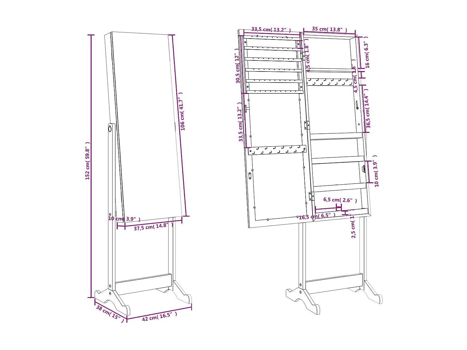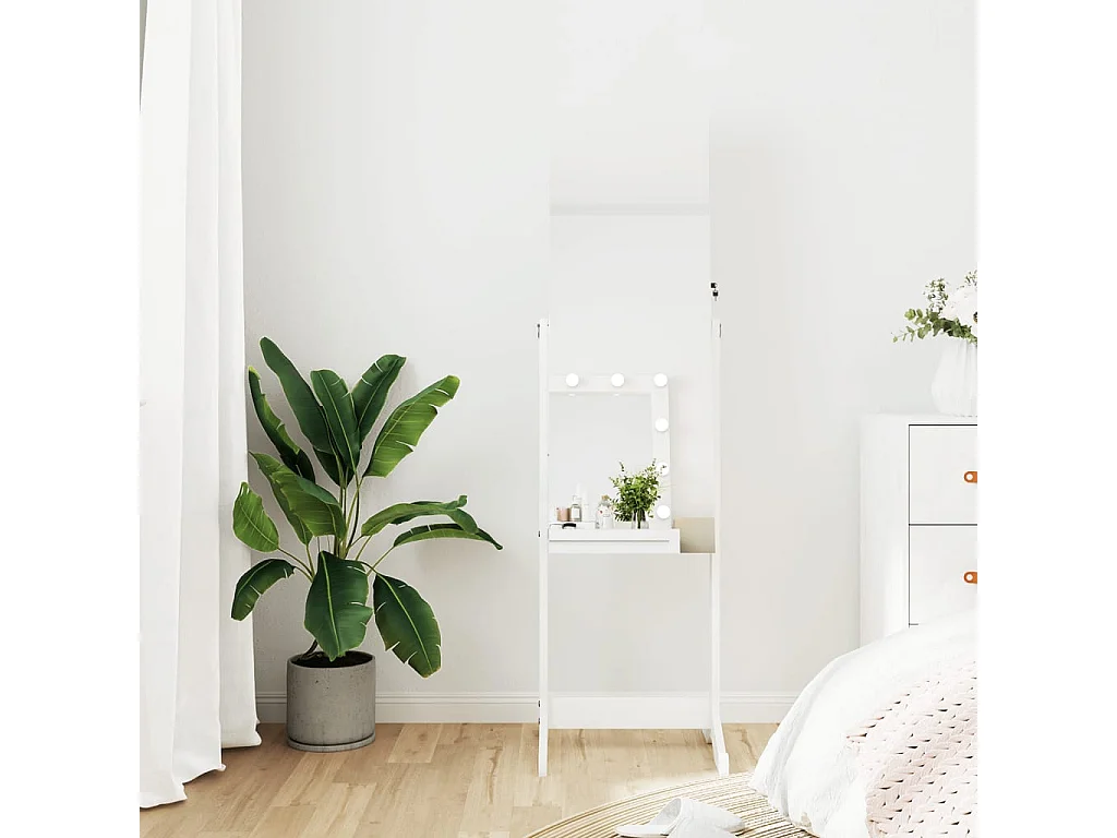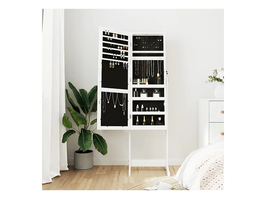 Armadio Portagioie Specchio Autoportante Bianco 42x38x152 cm