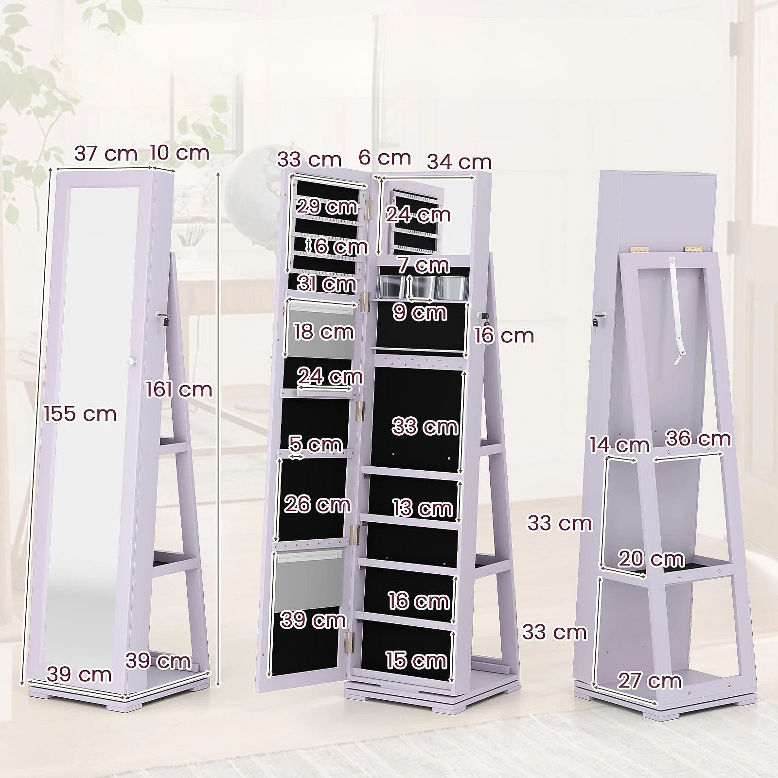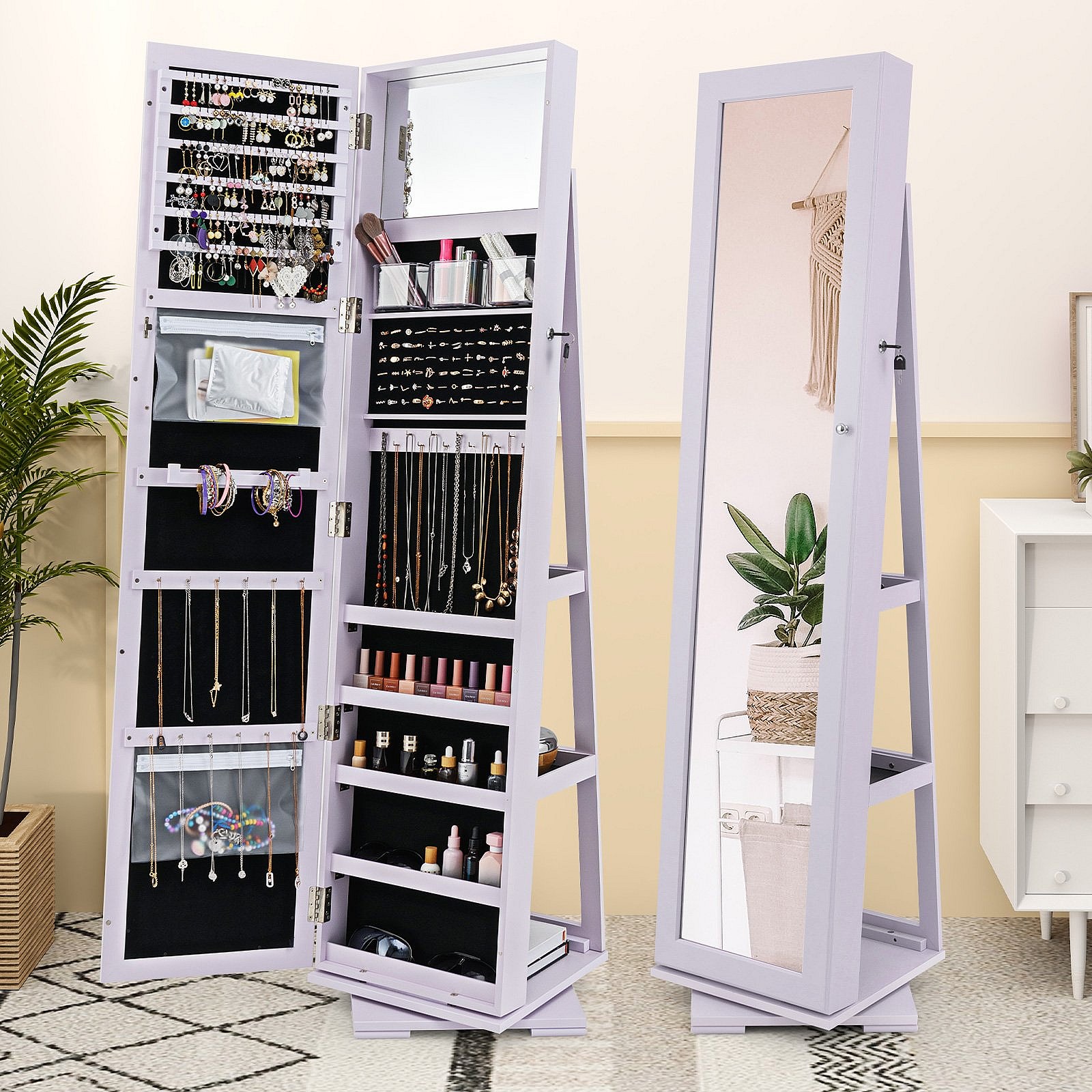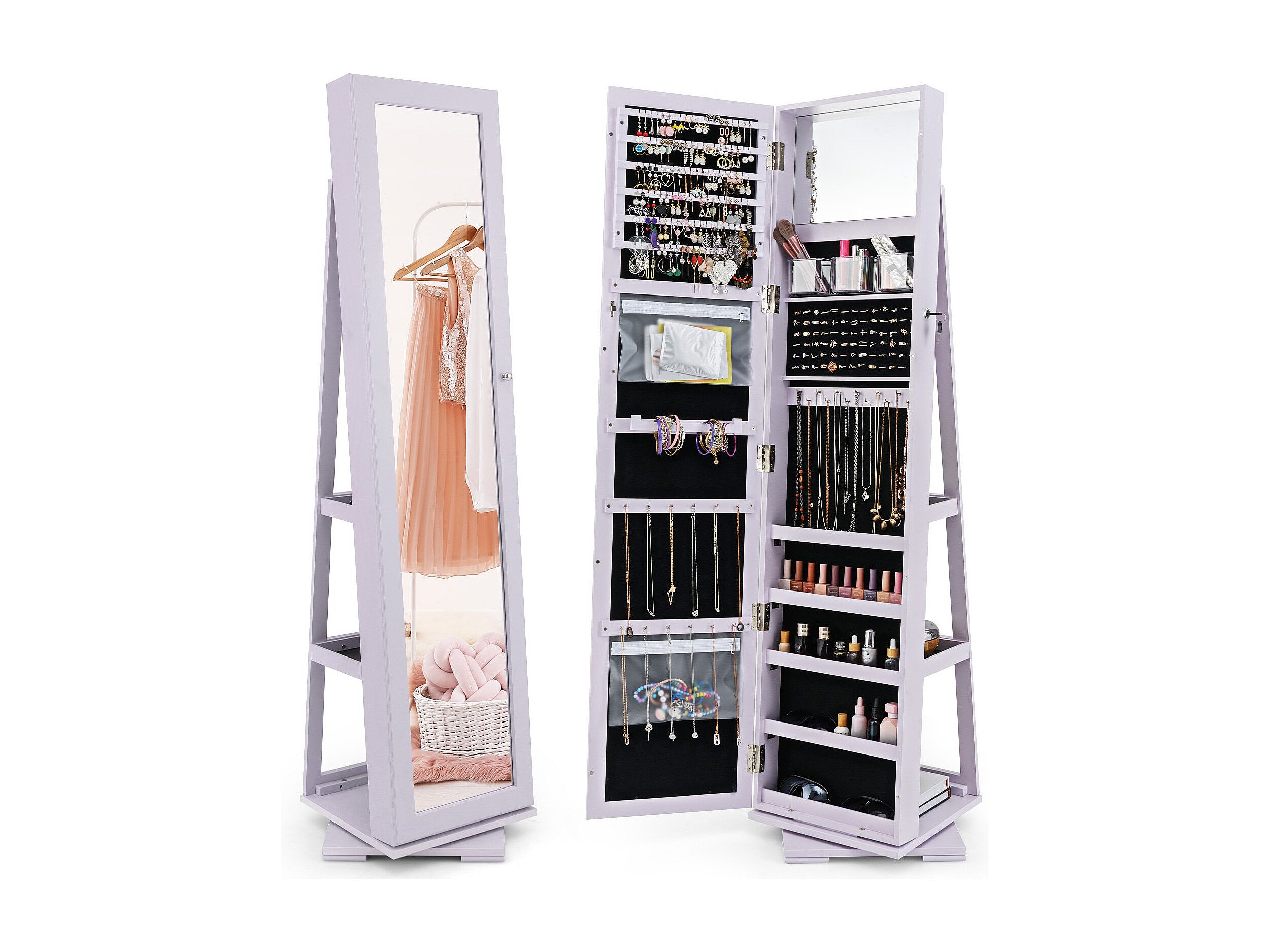Armadio portagioielli girevole a 360° con specchio, Organizer gioielli 2 in 1 a figura intera Viola