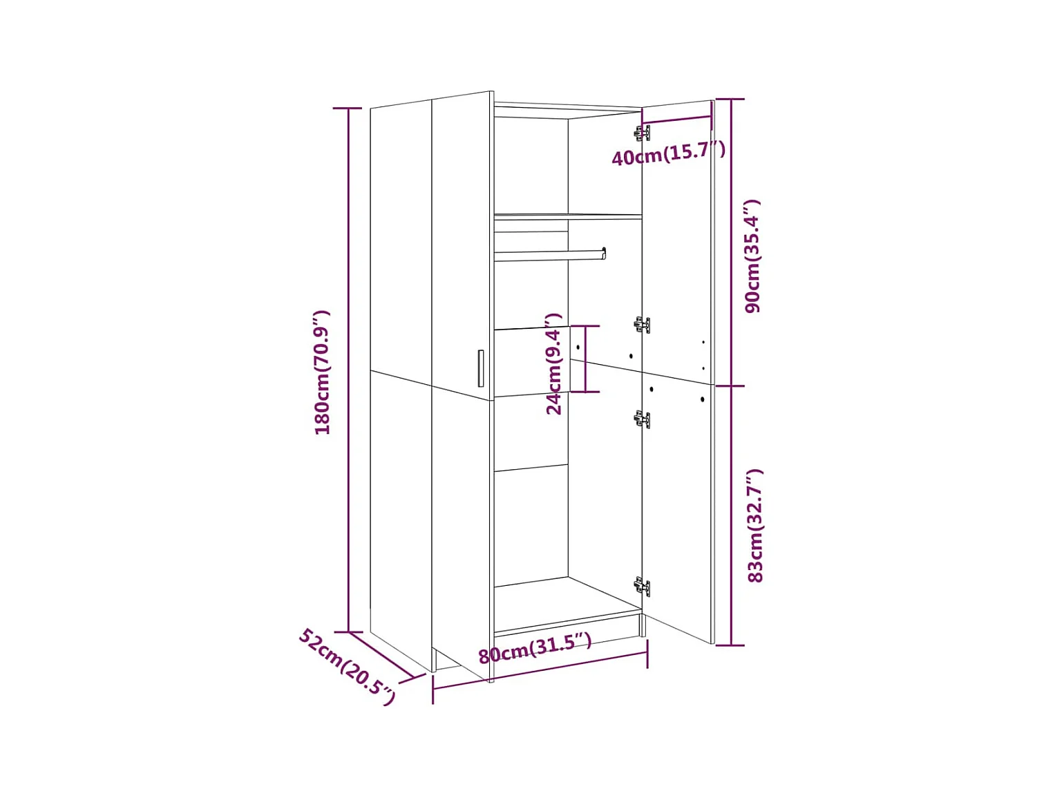 Armadio Sonoma Grey 80x52x180 cm in legno ingegnerizzato