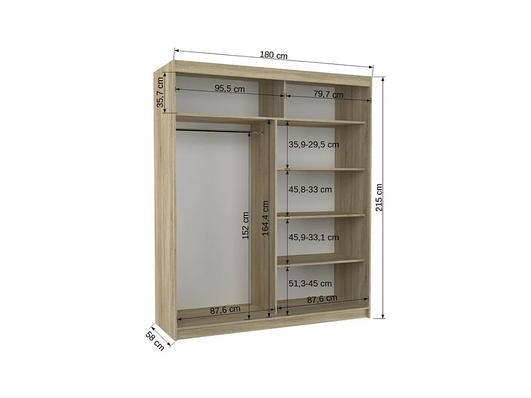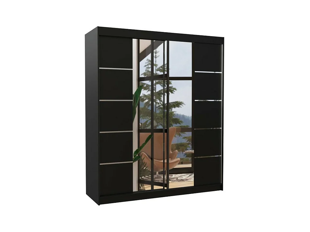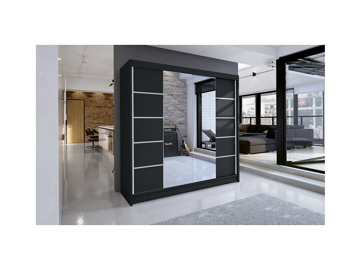 Armadio Triso (180cm)/Specchio/Ante scorrevoli/Nero