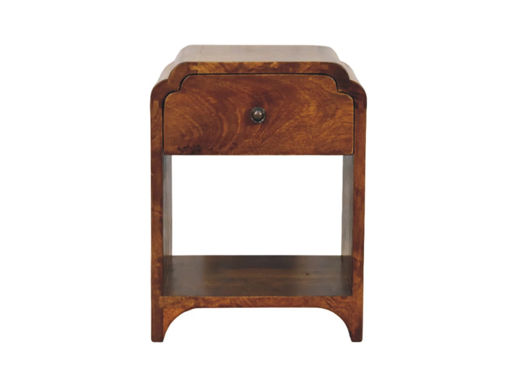 Artisan Furniture Legno Massiccio Comodino Newton Mini in Castagno, 1 Cassetto e Ripiano Aperto, Marrone Scuro