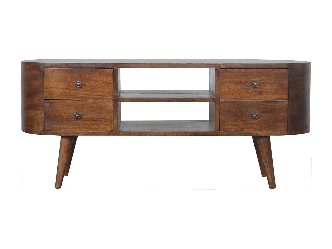 Artisan Furniture Unità di Intrattenimento Arrotondata in Legno Massello di Castagno con 4 Cassetti, Soggiorno o Sala TV