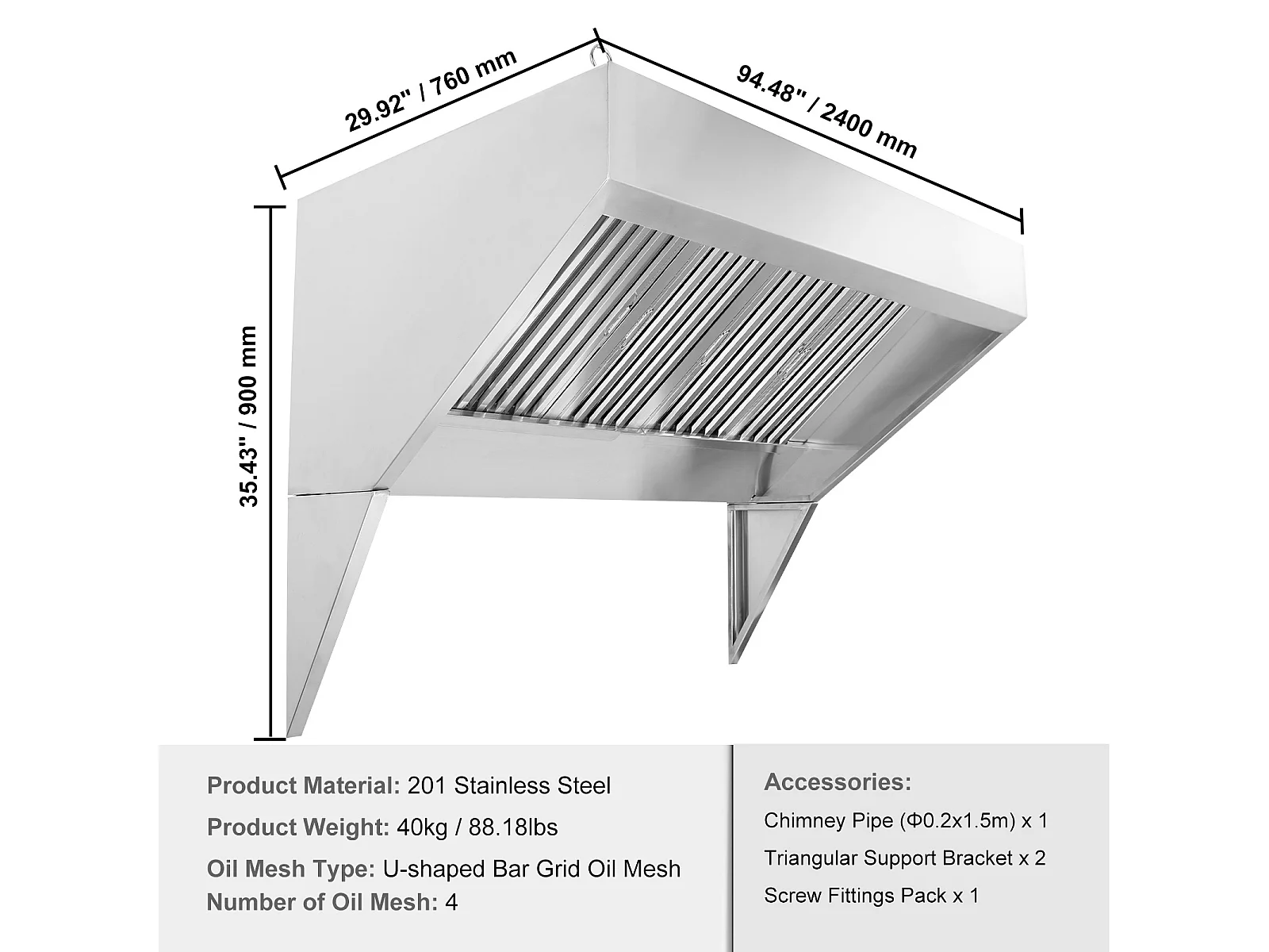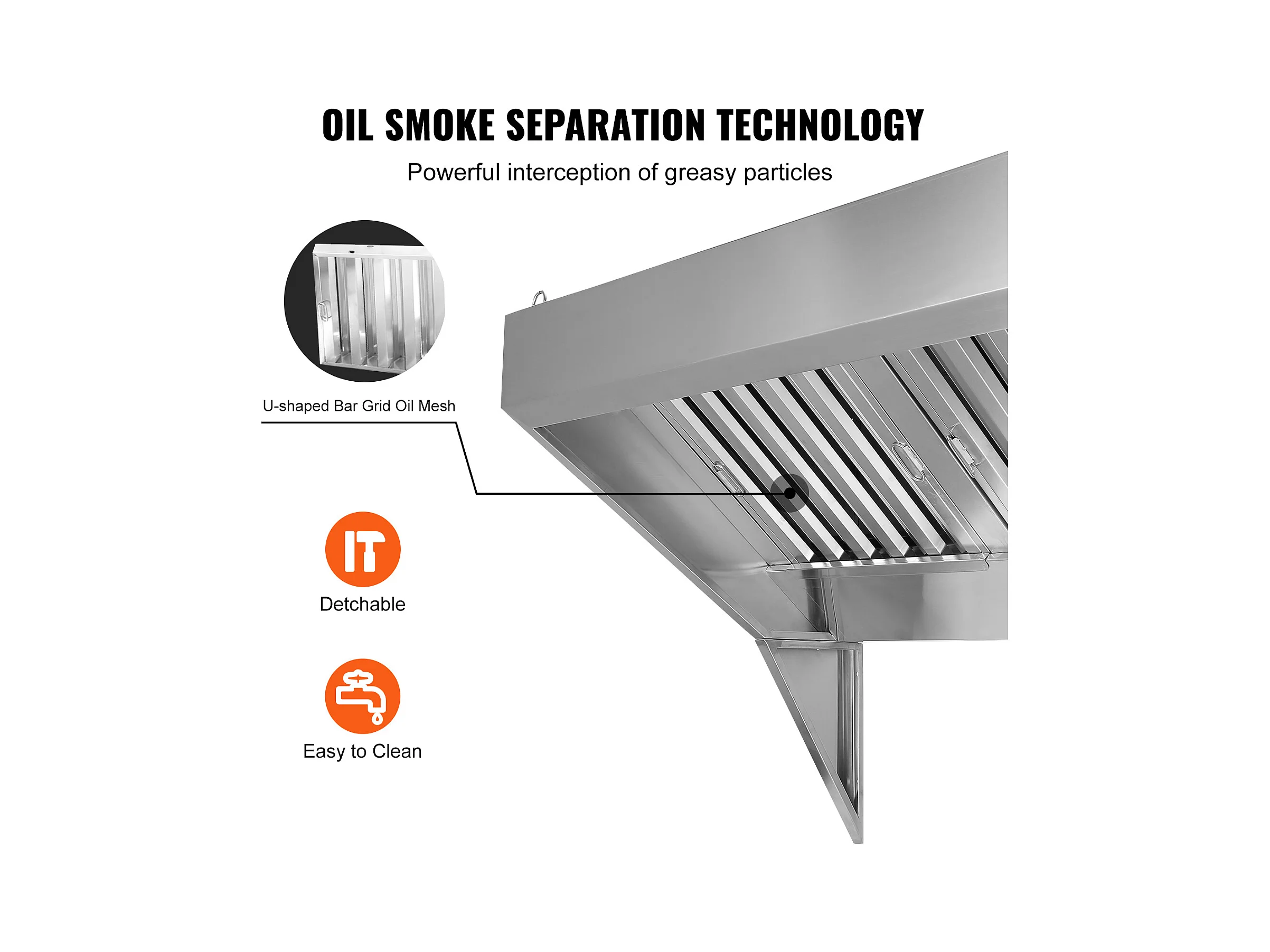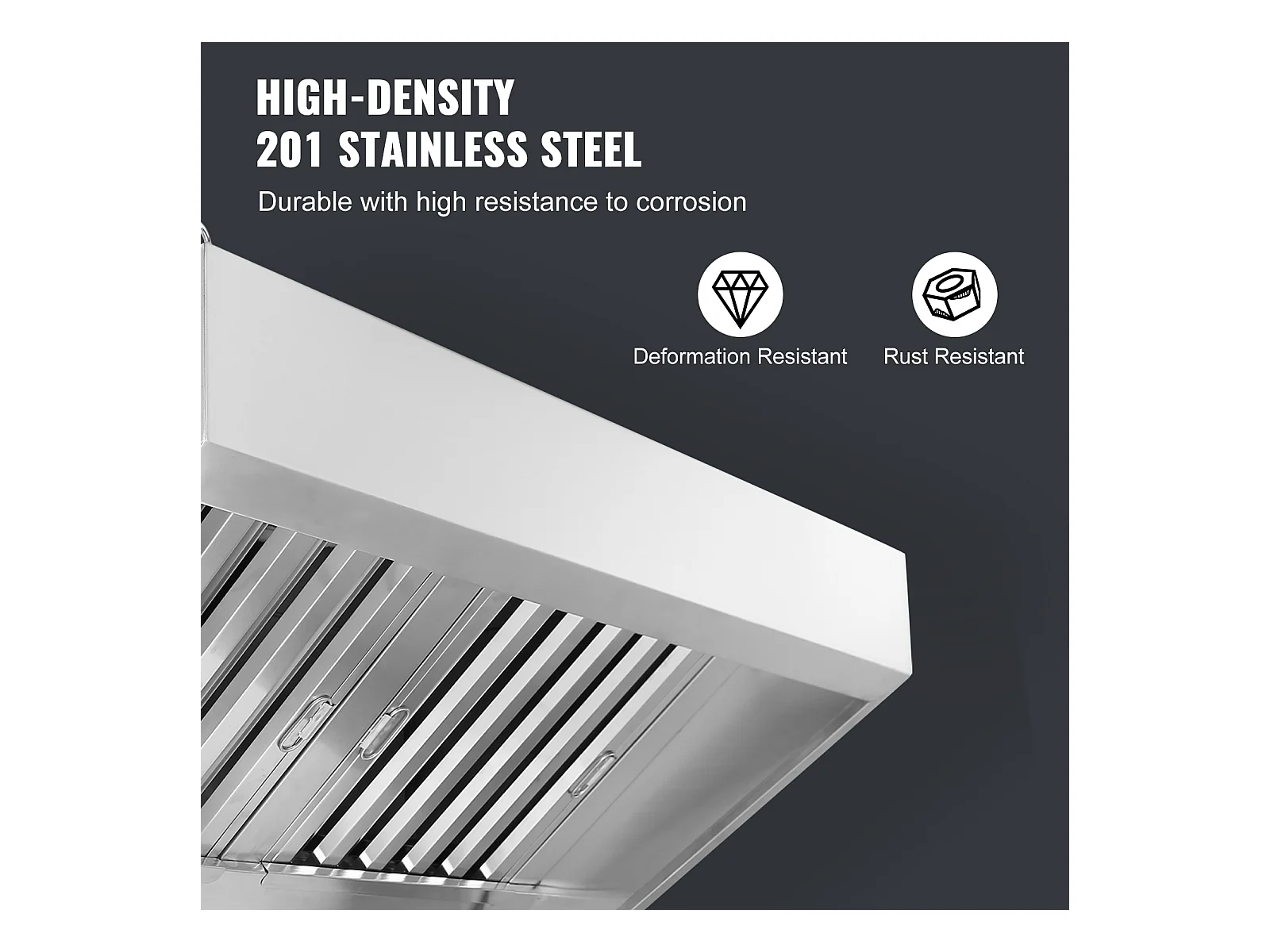 Cappa per Cucina SucceBuy Commerciale 20.32CM Camion di Cibo 201 in Acciaio Inossidabile, Filtri a Griglia Removibili a Forma di U, Resistente alla Ruggine