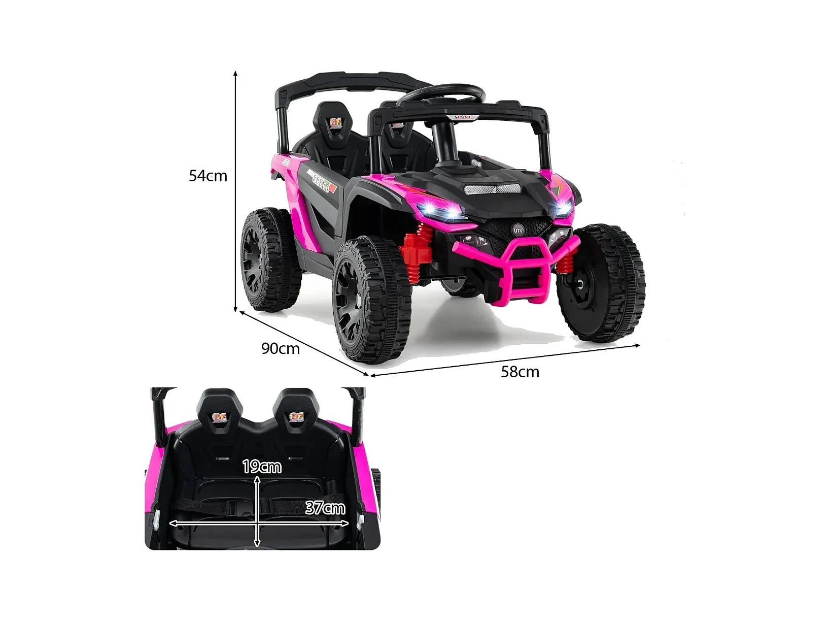 Maggiolino per bambini elettrico con telecomando luci sedile accogliente, Giocattolo realistico cavalcabile Rosa