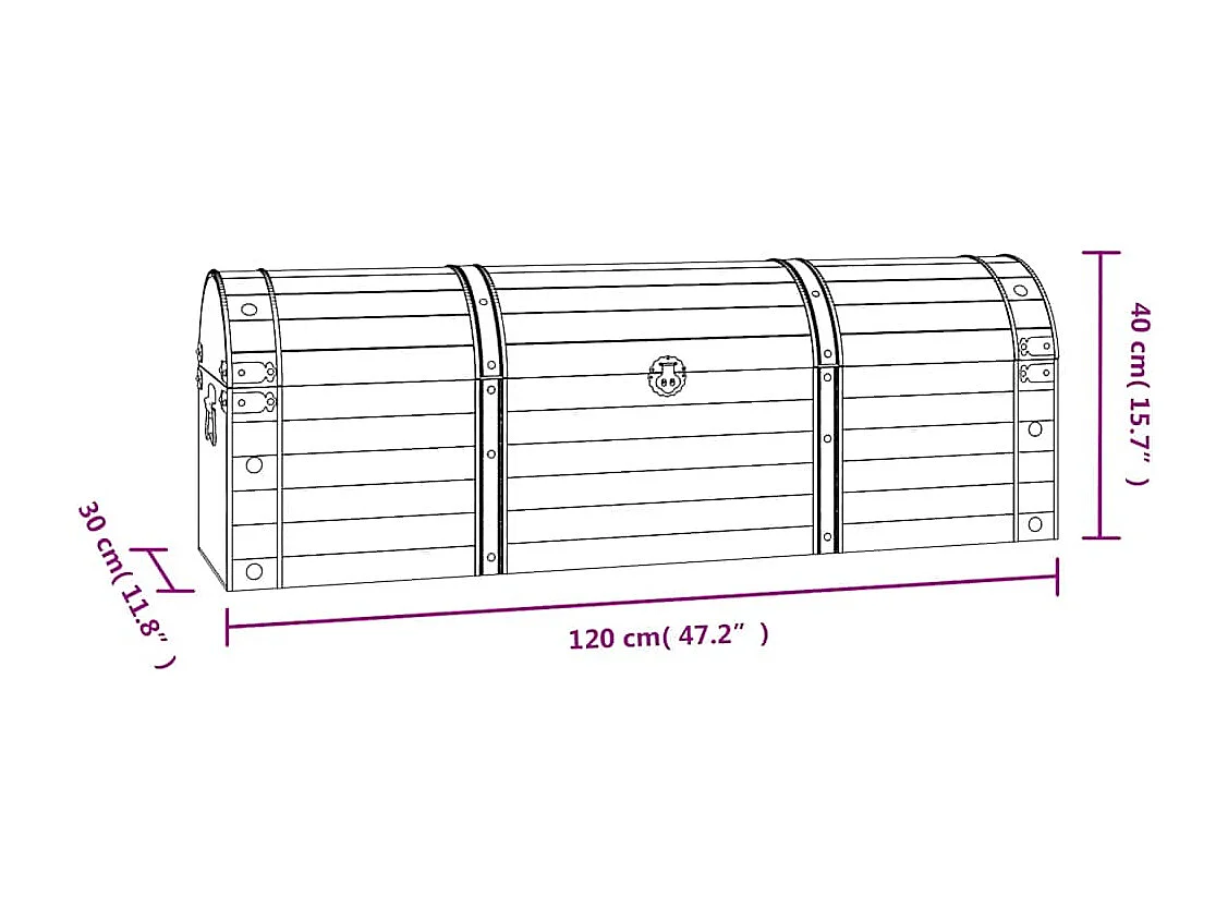 Baule in Legno Massello Stile Vintage 120x30x40 cm