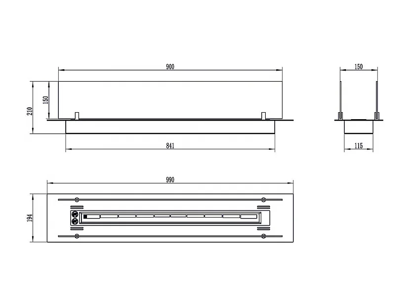 Camino a bioetanolo biocamino da parete incasso PECHINO L90 x H55 x P17