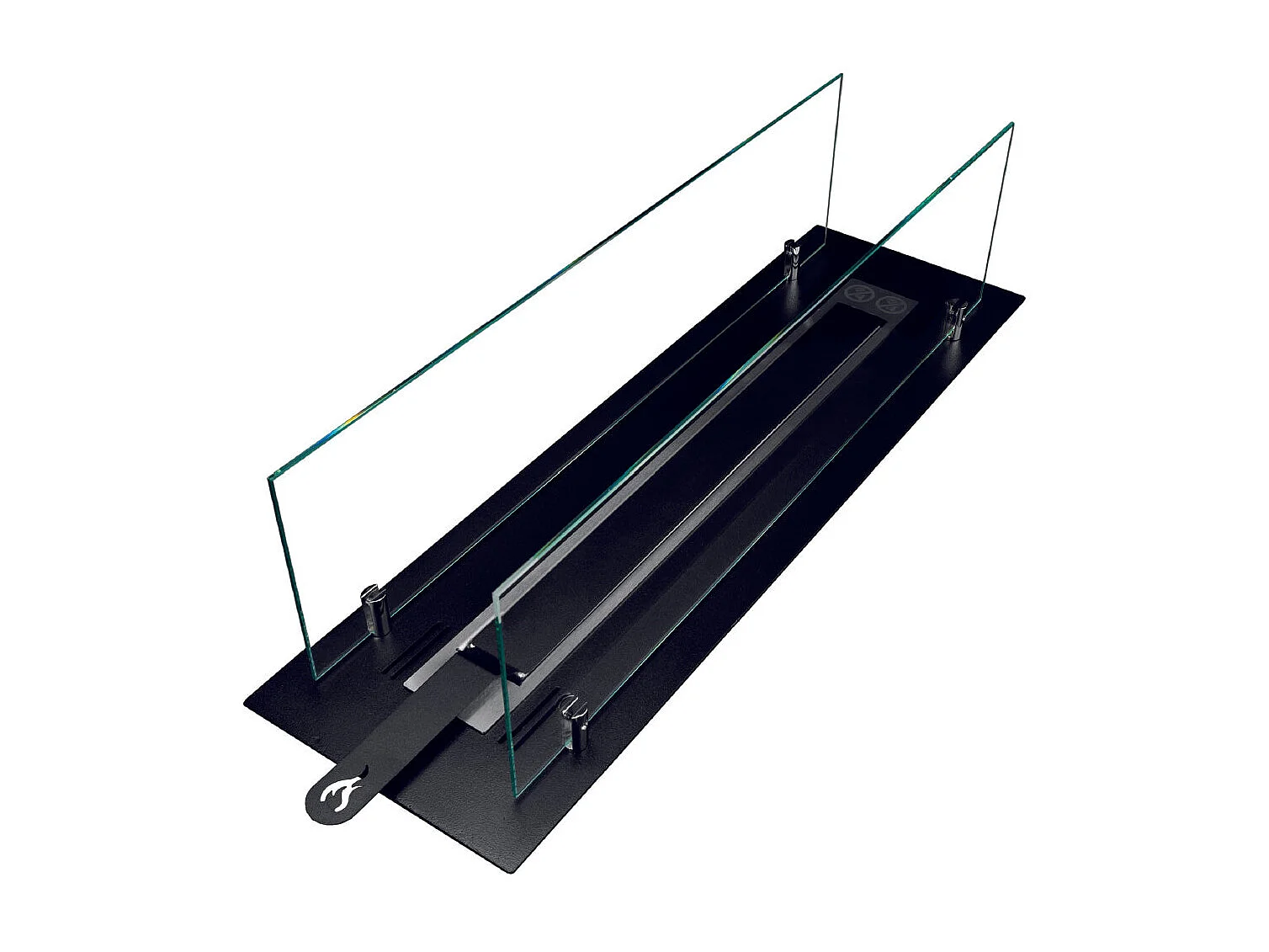 Bruciatore per camino a bioetanolo biocamino in acciaio con vetri da 65 cm