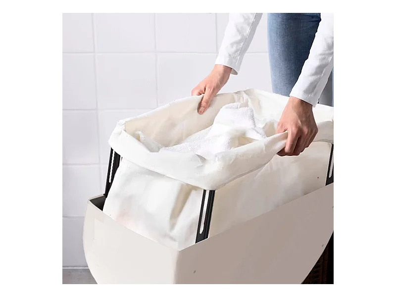 Cesto portabiancheria grigio e bianco Ø60x36 cm cotone