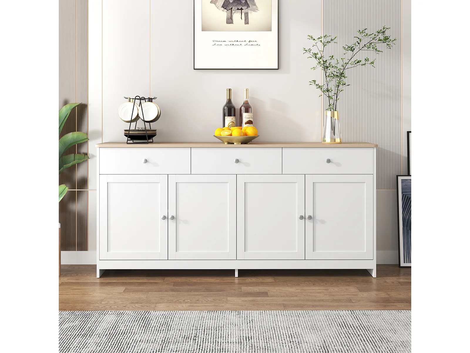 Buffet con venature del legno bianco, mobile da cucina con piano di lavoro, 160 x 37 x 75 cm, bianco