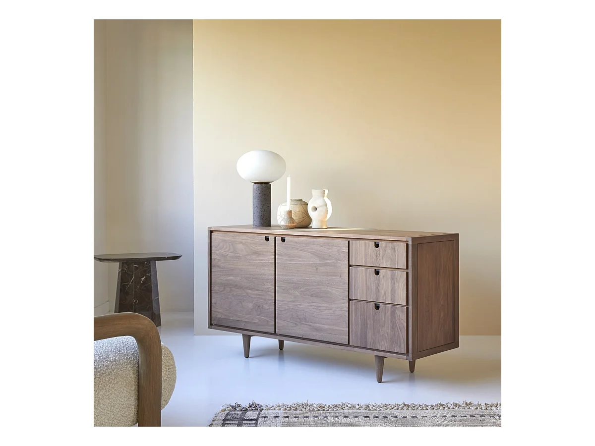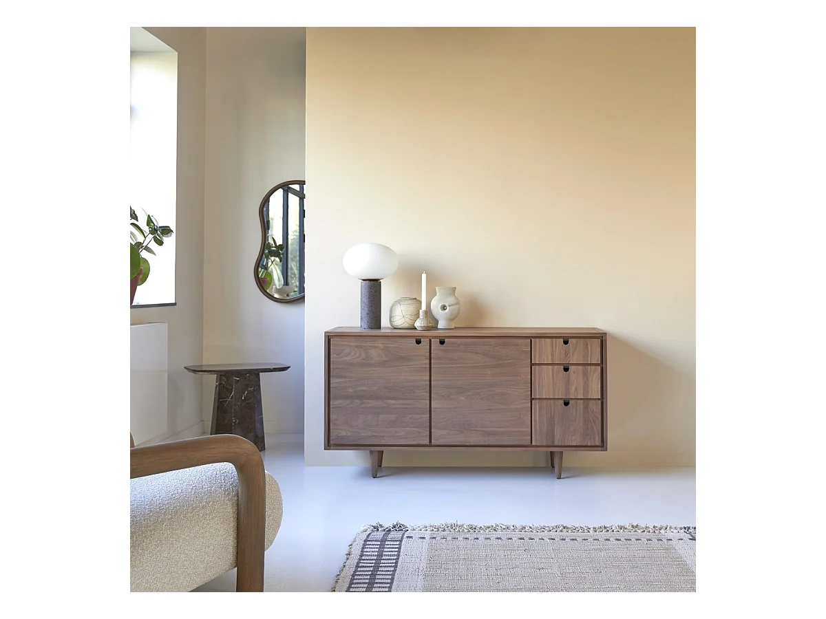 Credenza Isaure in legno di noce massello e battuto di terrazzo premium 80 cm