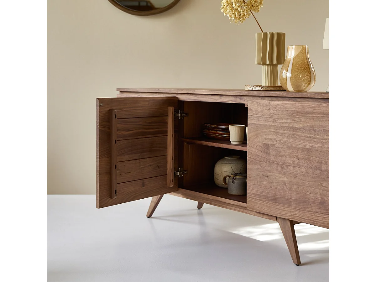 Credenza Isaure in legno di noce massello e battuto di terrazzo premium 80 cm