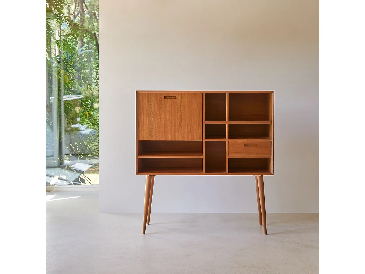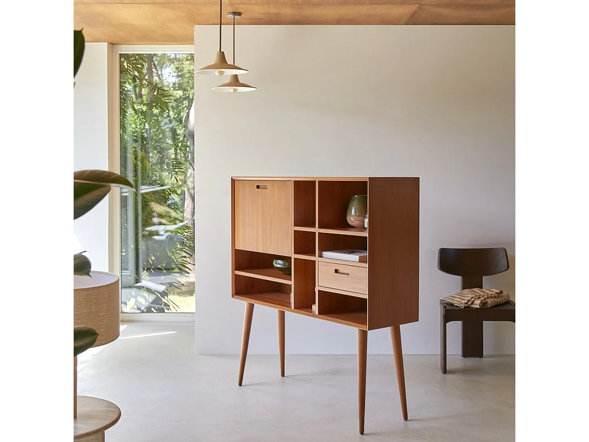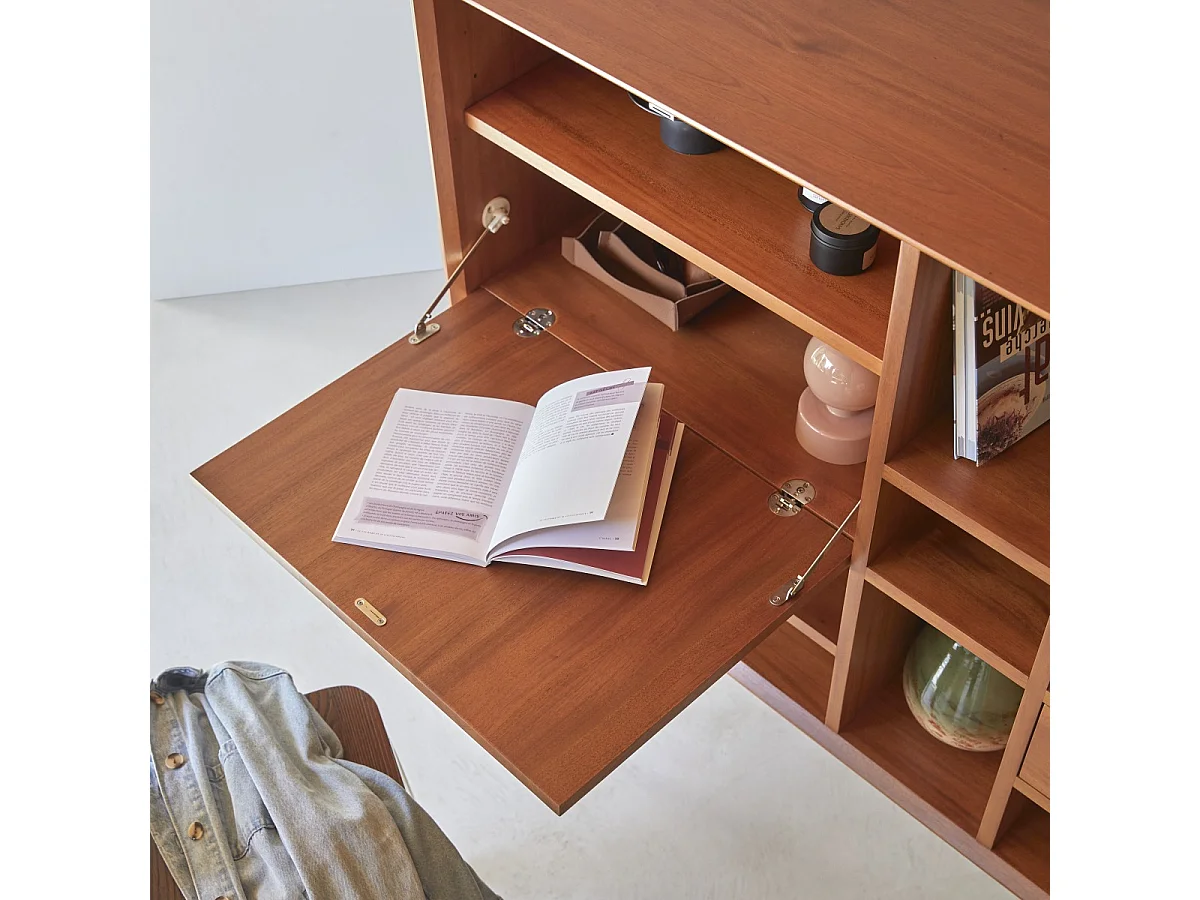 Credenza in legno di olmo massello e canna Luis 160 cm