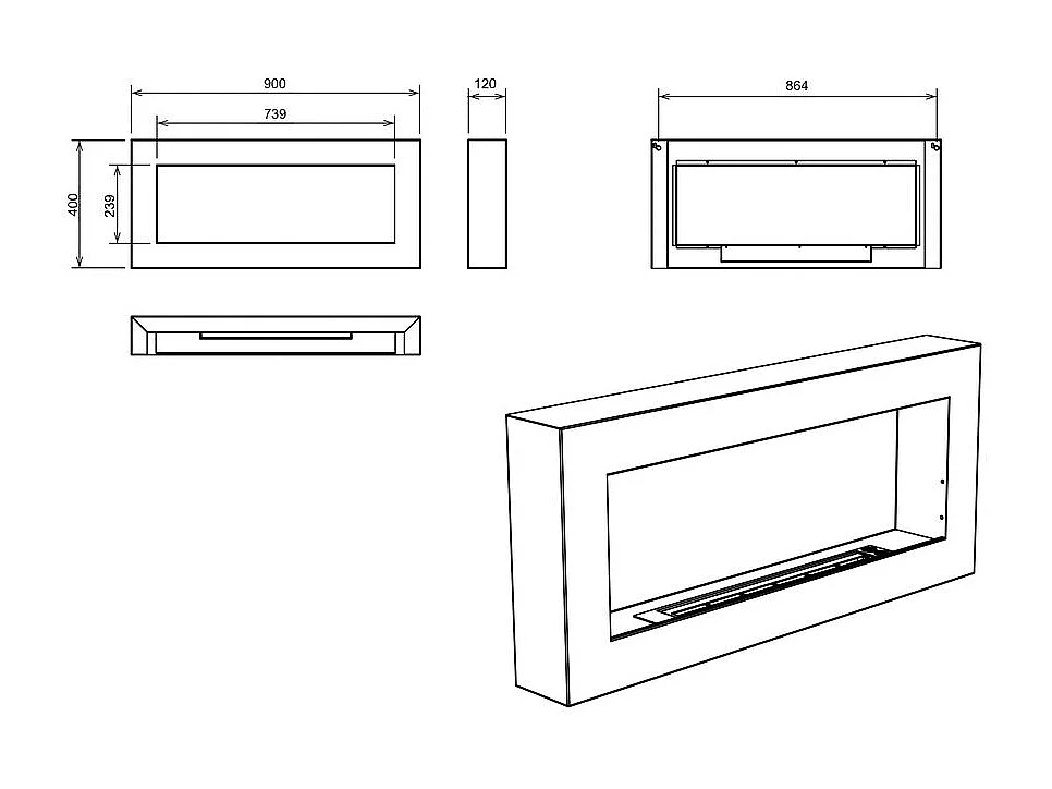Camino a bioetanolo da incasso parete biocamino 120x40 LIVORNO 120 Nero